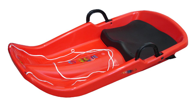 Plastový bob Superjet s brzdami a zabudovaným sedadlom je určený na rekreačný šport. V tejto sezóne sú k dispozícii červené a modré farby.