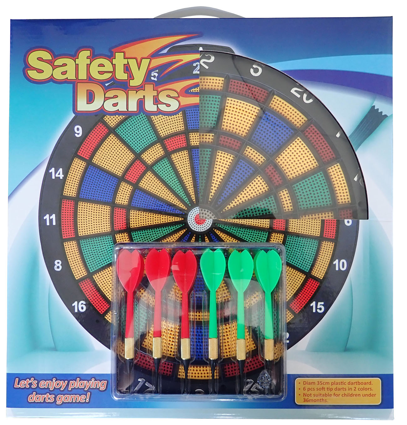 Mäkký terč - dierovaný 36 cm, + 6 šípov s plastovými hrotmi. Bezpečný typ cieľa. Ide o rovnakú konštrukciu ako pri elektronických terčoch.