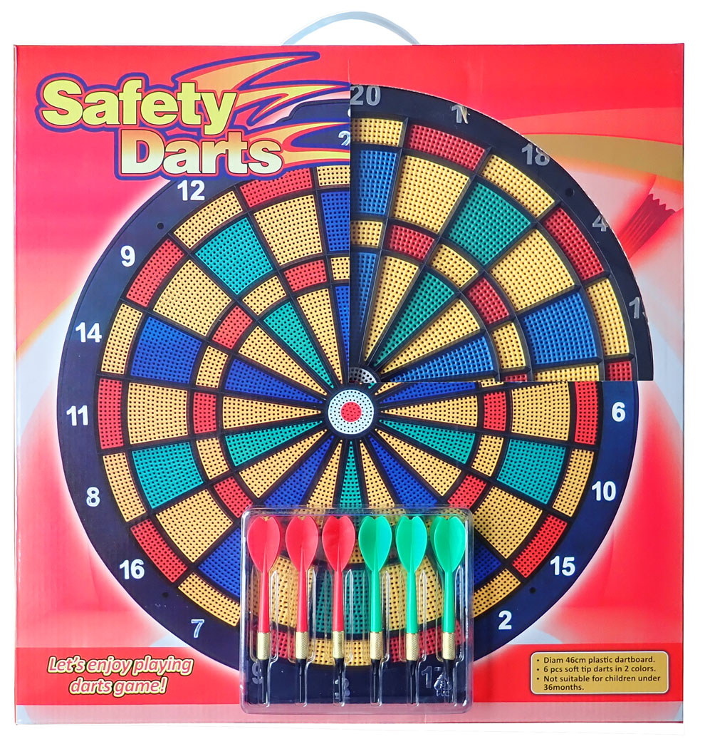 Terč - mäkký - perforovaný, 45 cm, + 6 šípok s plastovými, bielymi hrotmi. Súčasťou balenia sú náhradné hroty v čiernej farbe ( 6 ks ). Terč je dodávaný v prevedení, pozri foto.