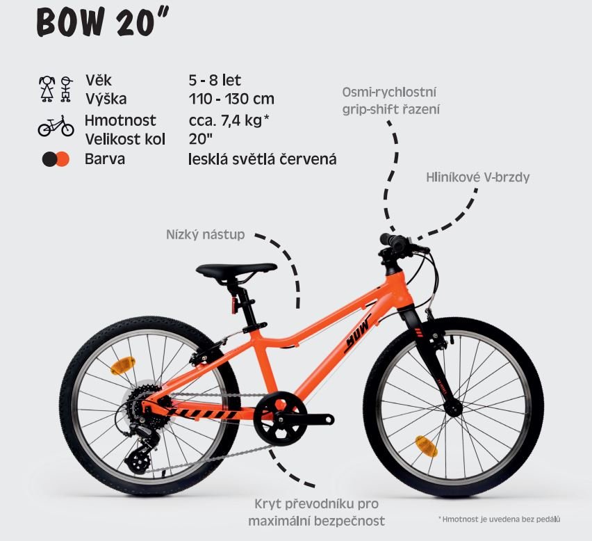 Ultralight bicykel BOW 20": štartovacia plocha pre malých cyklistov! Hmotnosť len 7,4 kg Ideálny pre deti vo veku 5-8 rokov Výška dieťaťa 110 - 130 cm "Predstavte si bicykel…