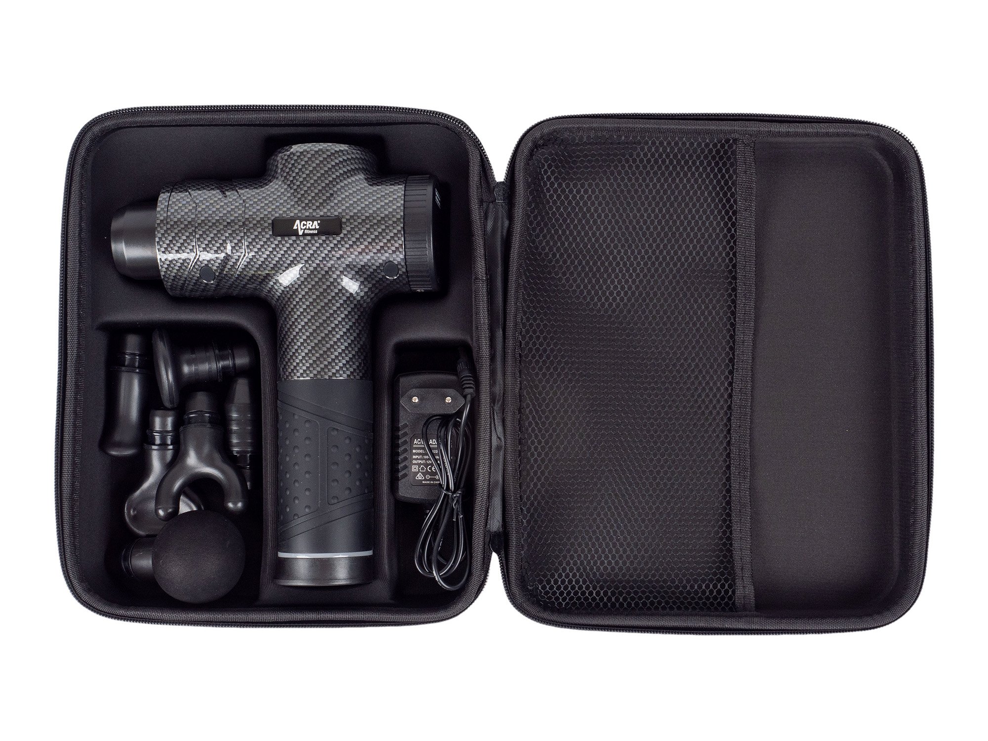 Acra Fitness GUN Bezdrôtová masážna pištoľ s LED displejom a šiestimi vymeniteľnými hlavicami, určená na profesionálne aj amatérske použitie.