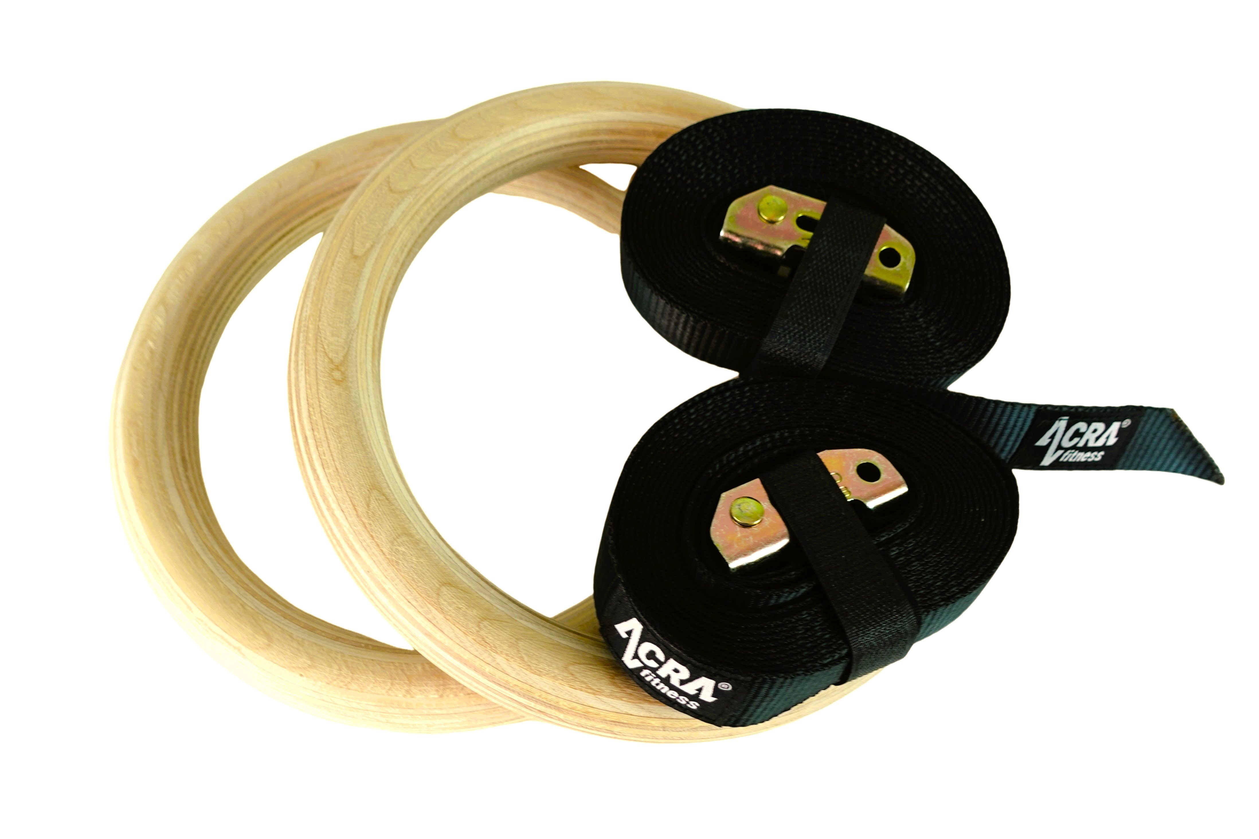 Drevené gymnastické kruhy Acra sú všestranné fitnes náradie určené na rôzne formy cvičenia vrátane tréningu s vlastnou váhou, kruhového tréningu alebo tréningu vonku.