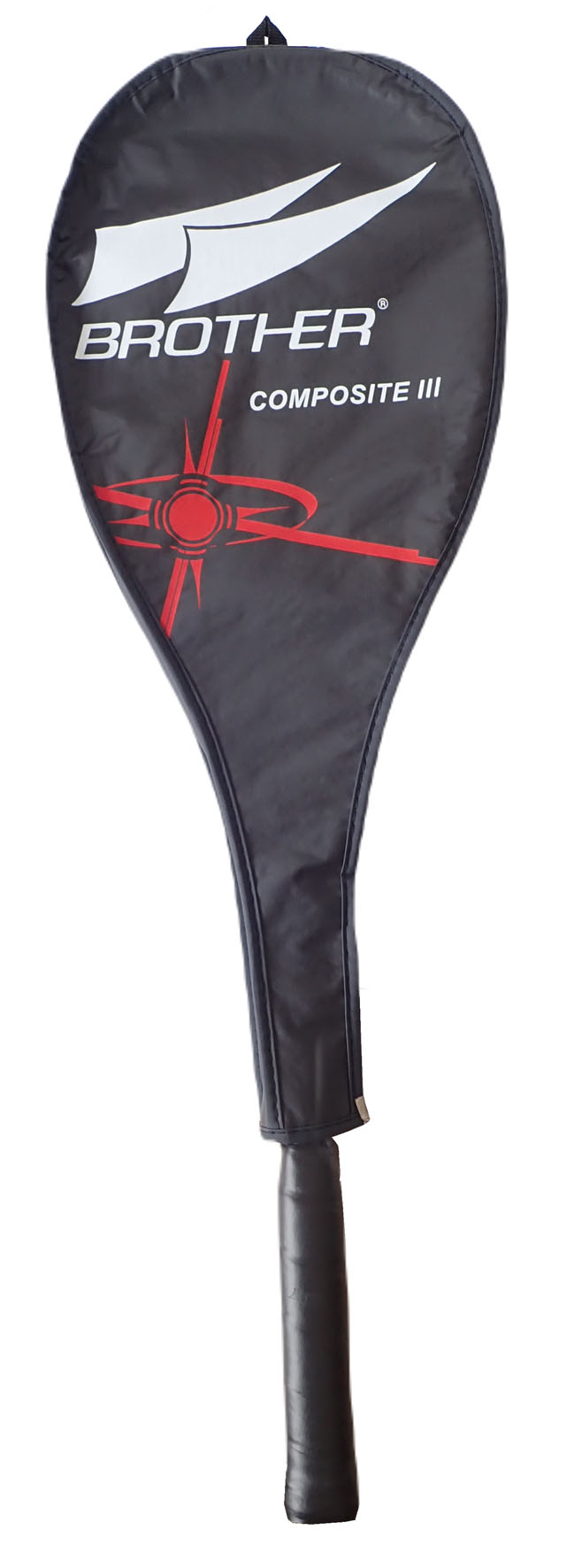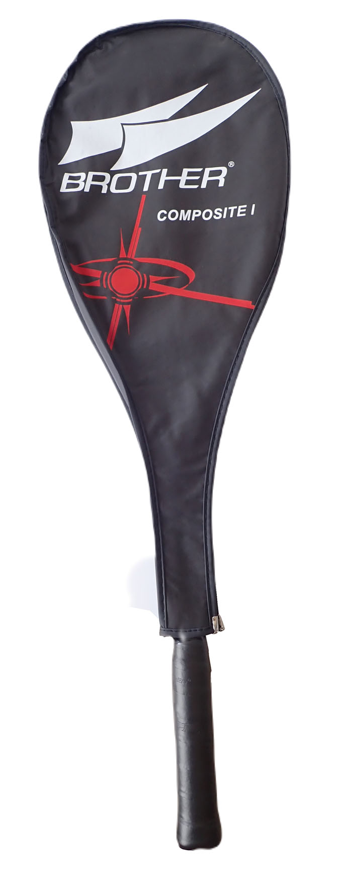Squashová pálka Brother, hliníkový rám + tlmič vibrácií. Tlmič nárazov je navrhnutý tak, aby vystužil rám rakety a zároveň tlmil vibrácie hliníkového rámu.