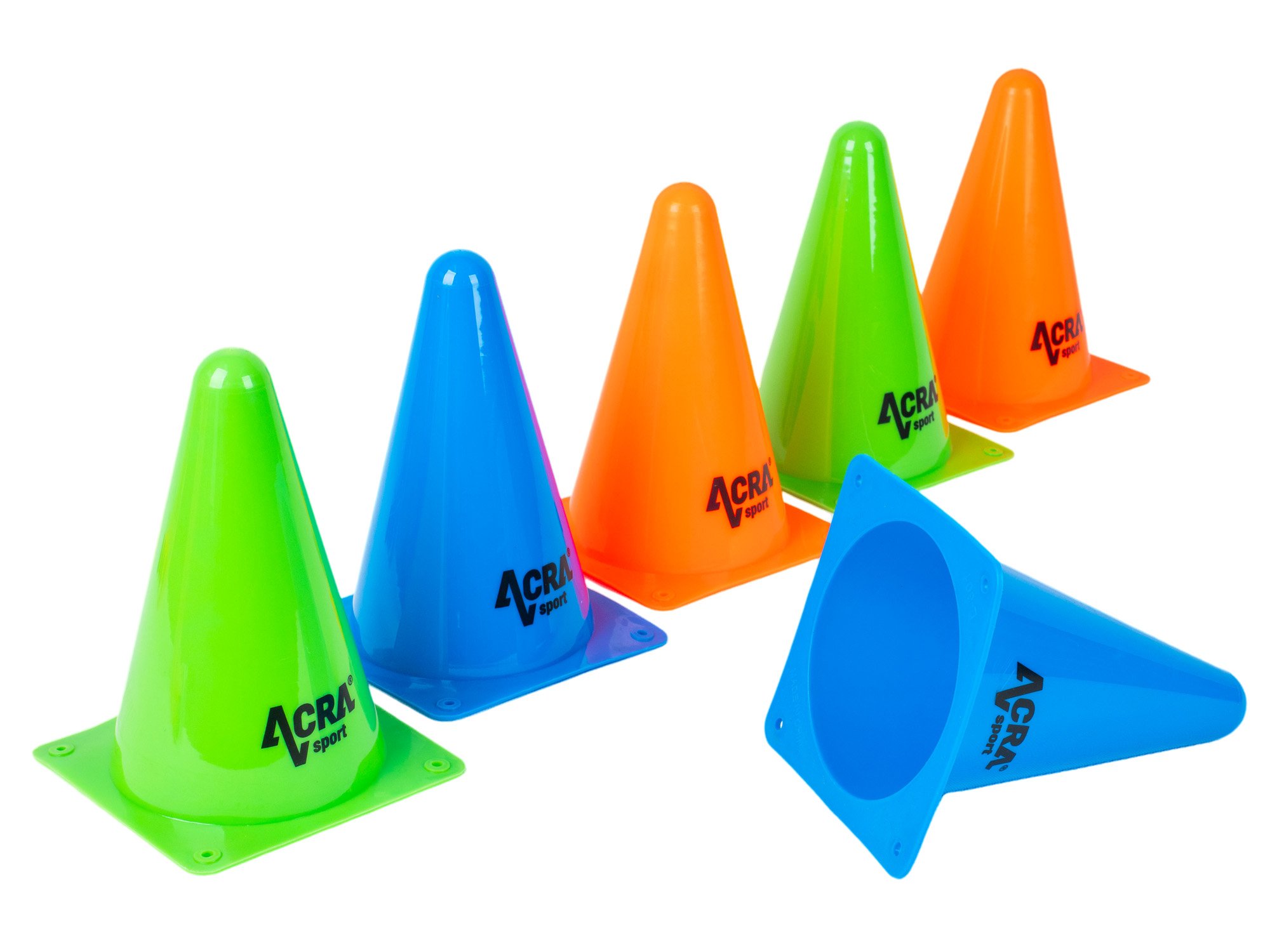 Tréningové kužele Acra tvoria sadu šiestich kusov, ktoré sú ideálne na športový tréning a rôzne pohybové aktivity.