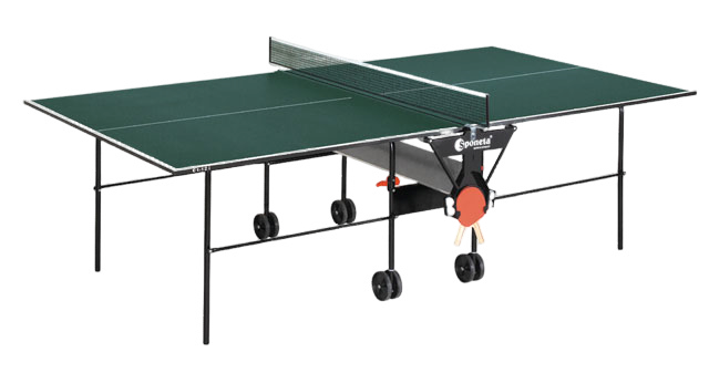 Stôl na stolný tenis Sponeta S1-26i, s pojazdom, sieťkou, držiakom sieťky je súčasťou vybavenia stola.