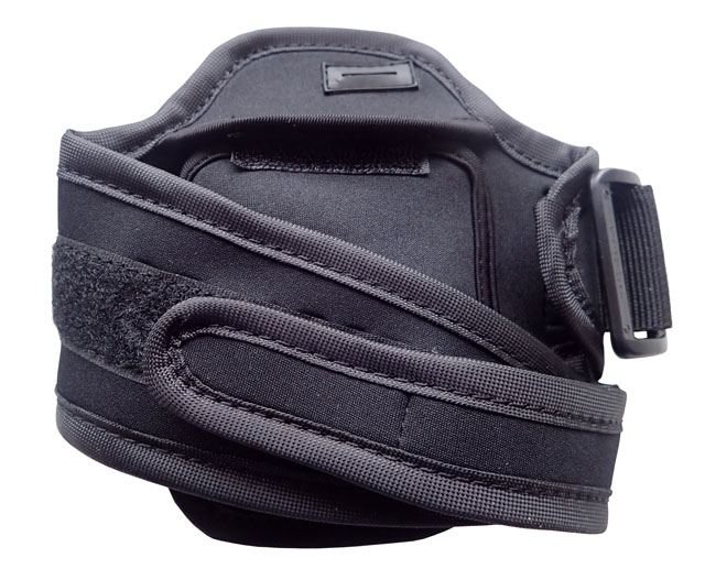 Puzdro na mobilný telefón s priehľadným vreckom a upínacím popruhom. Puzdro je vhodné na pripevnenie na ruku pri behu, jazde na kolieskových korčuliach alebo na bicykli.