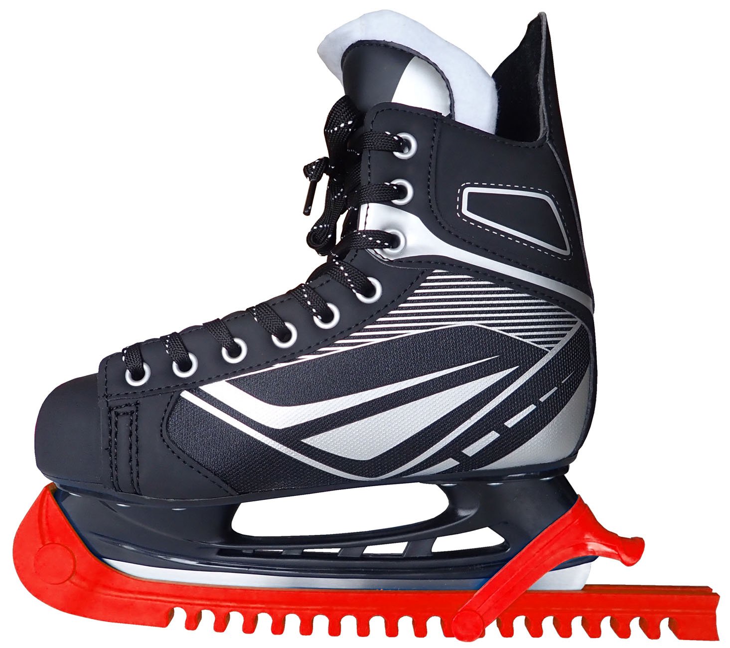 Plastové chrániče korčúľ - univerzálna veľkosť, vhodné pre hokejové a krasokorčuliarske korčule. Dizajn korčúľ je v červenej farbe.