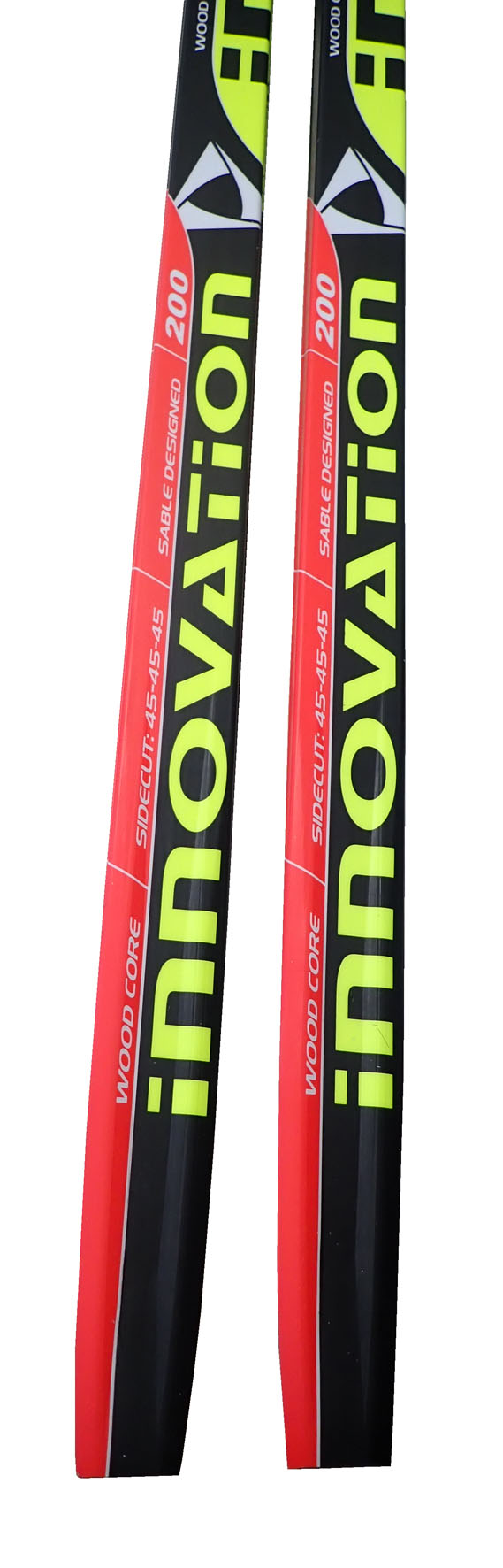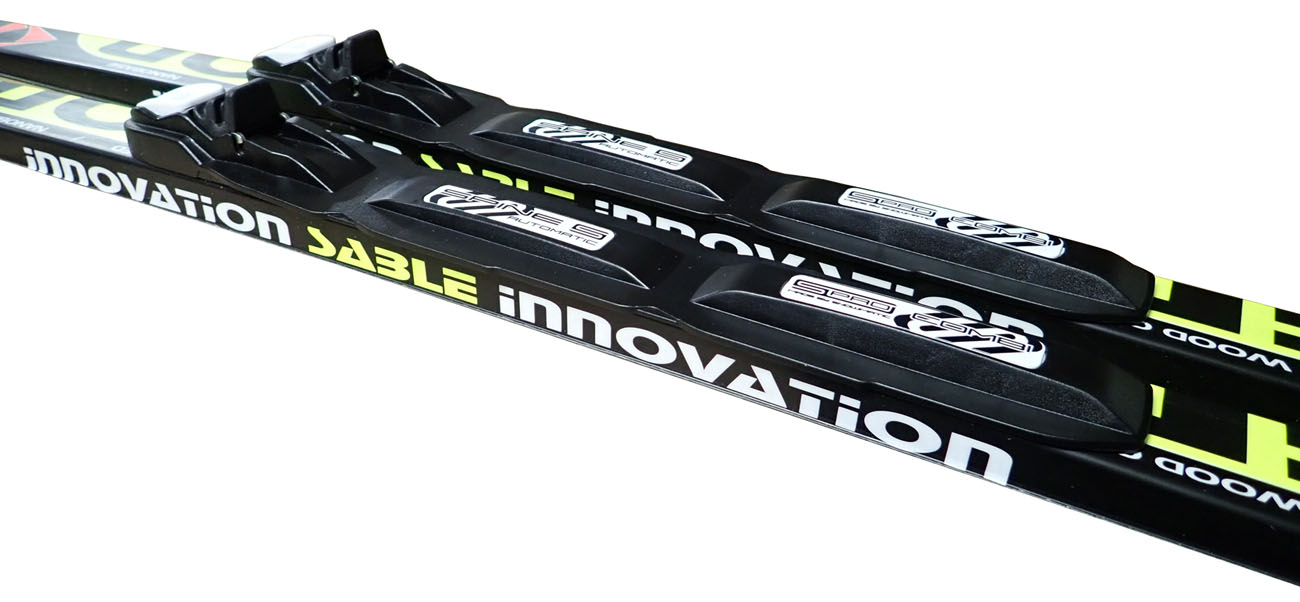 Kvalitné bežecké lyže Sable s dreveným jadrom a namontovaným viazaním Salomon. Ide o rekreačný model lyží so šírkou 45 mm.