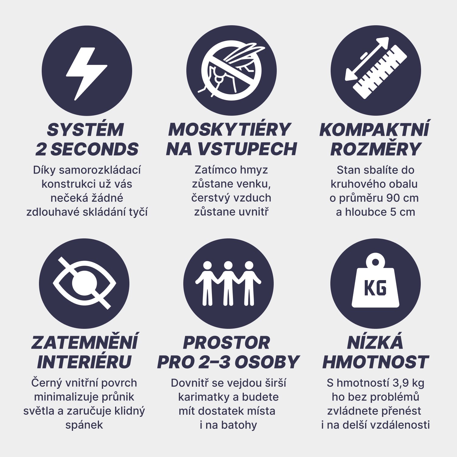Acra Outdoor ST30 - stan pre 2-3 osoby, ktorý postavíte za 2 minúty a ľahko, v zelenej farbe! Hľadáte praktický a ľahko postaviteľný stan pre 2-3 osoby na víkendové výlety alebo kempovanie? Potom je stan Acra Outdoor ST30 tou správnou voľbou! Tento samonosný stan s inovatívnym systémom 2 sekundy vám umožní postaviť stan len za 2 minúty bez potreby zložitého skladania tyčí. Hlavné vlastnosti: Rýchle a jednoduché postavenie. Stan sa pripevní k stanu až po vybratí zo stanu a kolíky a kotviace šnúry sú otázkou niekoľkých okamihov. Vnútorné čierne tienenie: Čierna farba vnútorného stanu minimalizuje prenikanie svetla, čím zabezpečuje nerušený spánok aj v skorých ranných hodinách. Kompaktný a ľahký: Stan sa ľahko zbalí do malého balíka (O 90 × 5 cm) a je ľahký (3,9 kg), takže ho môžete ľahko prenášať na dlhšie vzdialenosti. Priestorový interiér. Spálňa má rozmery 280 × 210 cm a maximálnu výšku 120 cm, takže sa do nej pohodlne zmestia samonafukovacie matrace so šírkou 70 cm. Funkčná konštrukcia:Stan je vyrobený z vysokokvalitných materiálov - vrchná strana je vyrobená z polyesteru 190T s 2000 mm PU povrchovou úpravou a spodná strana je vyrobená z materiálu 210D Oxford s 3000 mm PU povrchovou úpravou, ktorá zaručuje odolnosť voči vode a poveternostným vplyvom. Funkčné detaily:Stan je vybavený predným a zadným vchodom s moskytiérou, ktorá vás ochráni pred hmyzom. Čierna vnútorná farba stanu znižuje prenikanie svetla, čím zabezpečuje pokojný spánok aj v ranných hodinách. Mechanické vetranie umožňuje regulovať prúdenie vzduchu vo vnútri stanu. Acra Outdoor ST30 je ideálnou voľbou pre tých, ktorí ocenia rýchle a jednoduché postavenie, kompaktné rozmery, nízku hmotnosť a pohodlný interiér. Stan je vhodný na kempovanie a zaručene vám spríjemní pobyt v prírode.