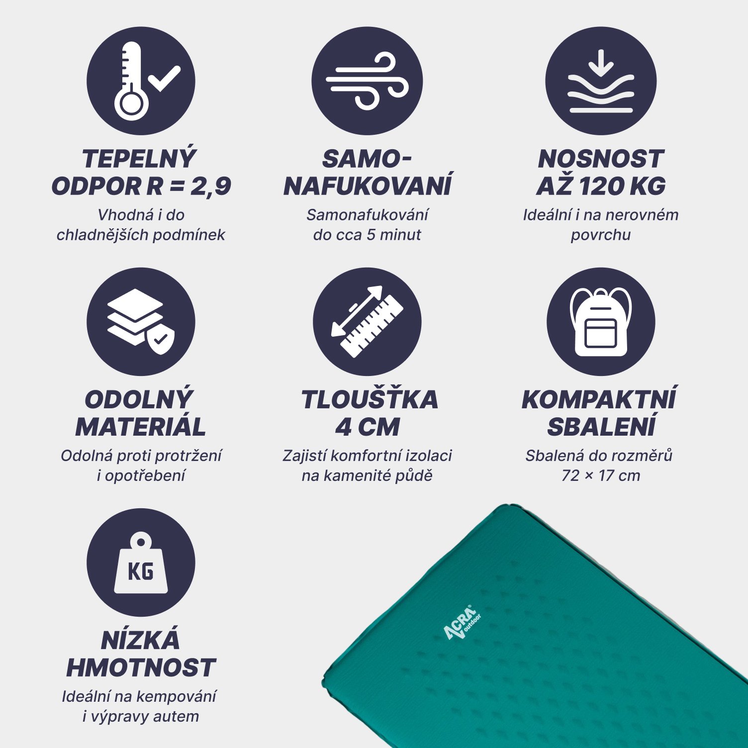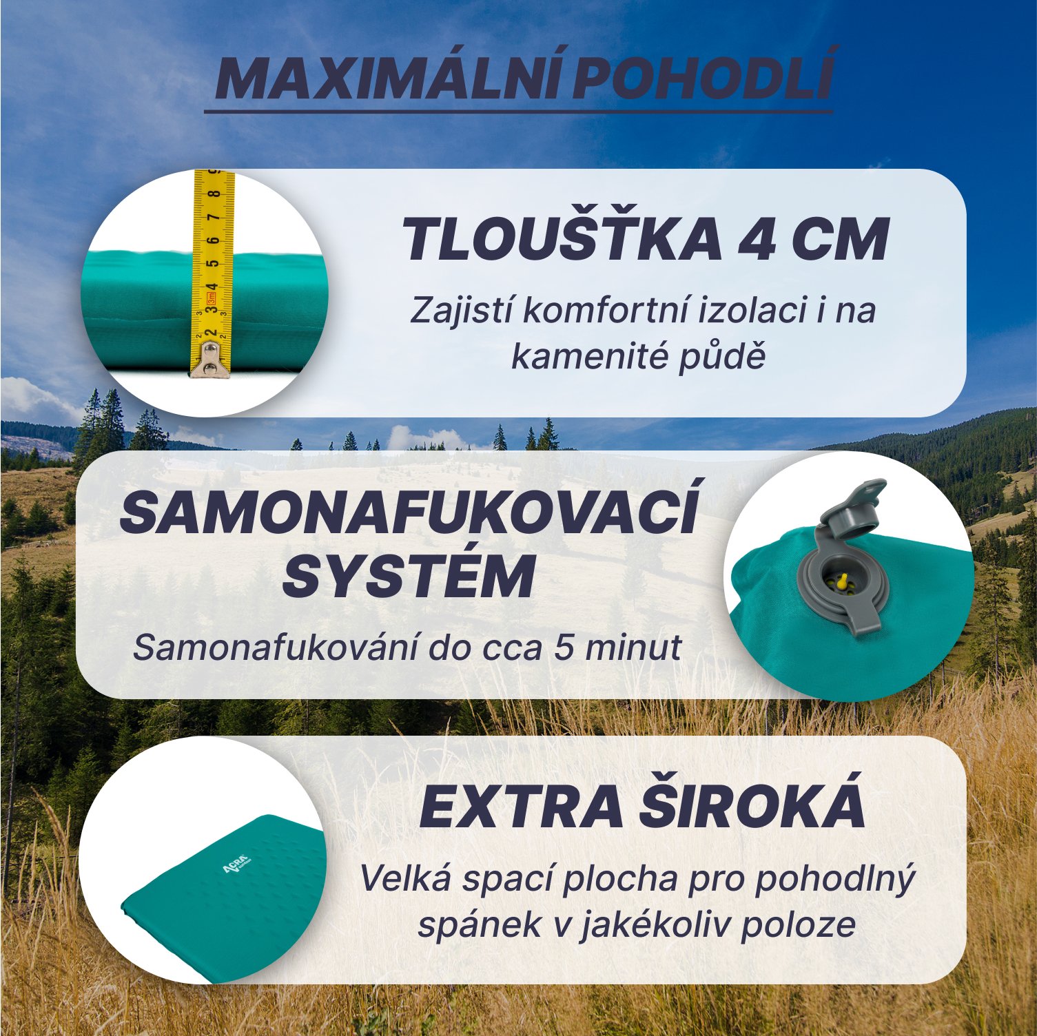 Nosnosť do 120 kg: Karimatka je určená pre osoby s maximálnou hmotnosťou 120 kg.