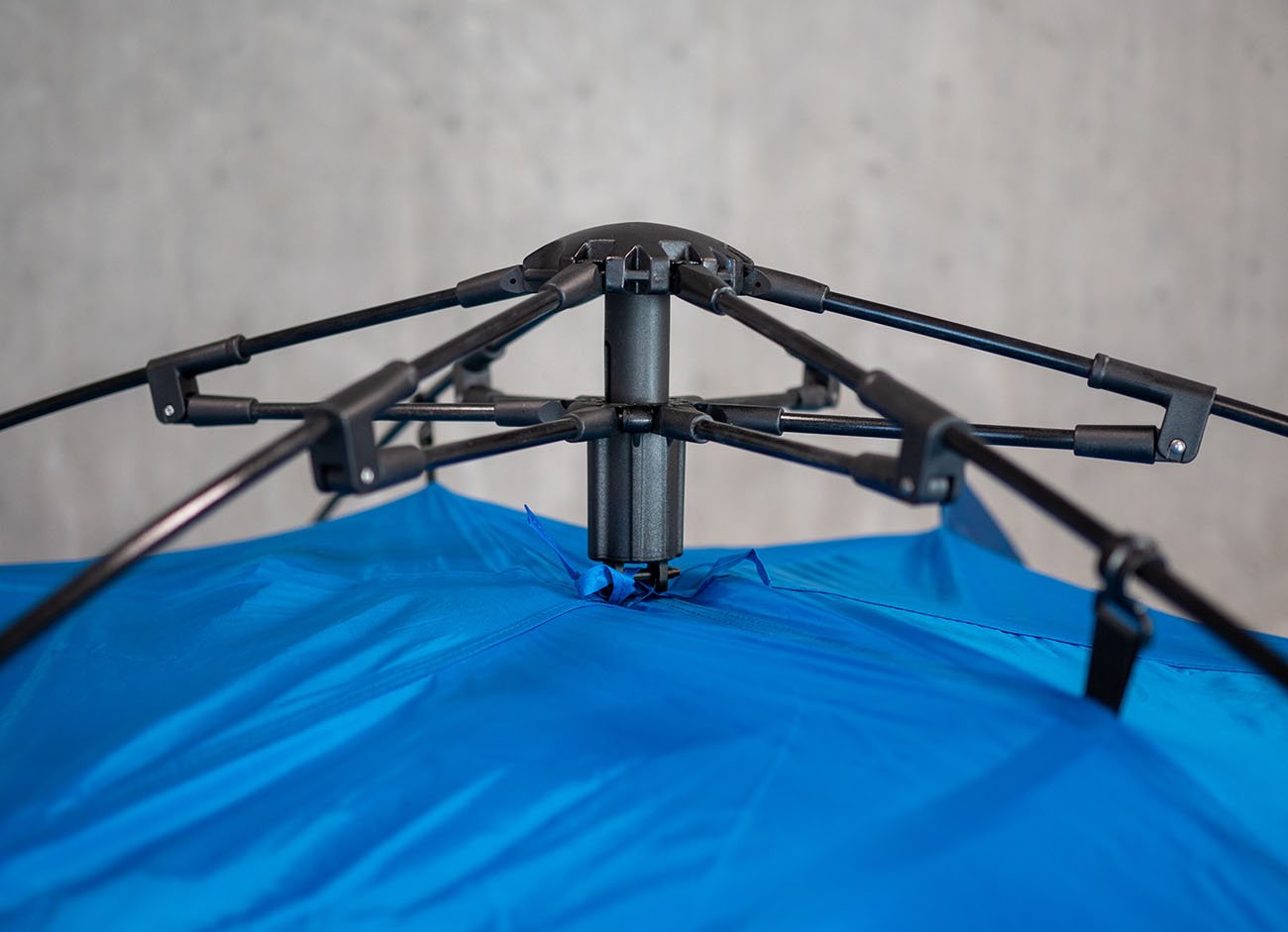 Stačí vybrať stan z obalu, uchopiť horný spojovací diel a stan sa vďaka pružným nosným tyčiam postaví sám. Nohy stanu sú napnuté pomocou kolíkov, šnúry sú ukotvené a stan je pripravený na použitie. Stan je dobré rozložiť podľa návodu, aby sa zabránilo zlomeniu tyčí. Súčasťou balenia sú oceľové kolíky a upínacie šnúry.