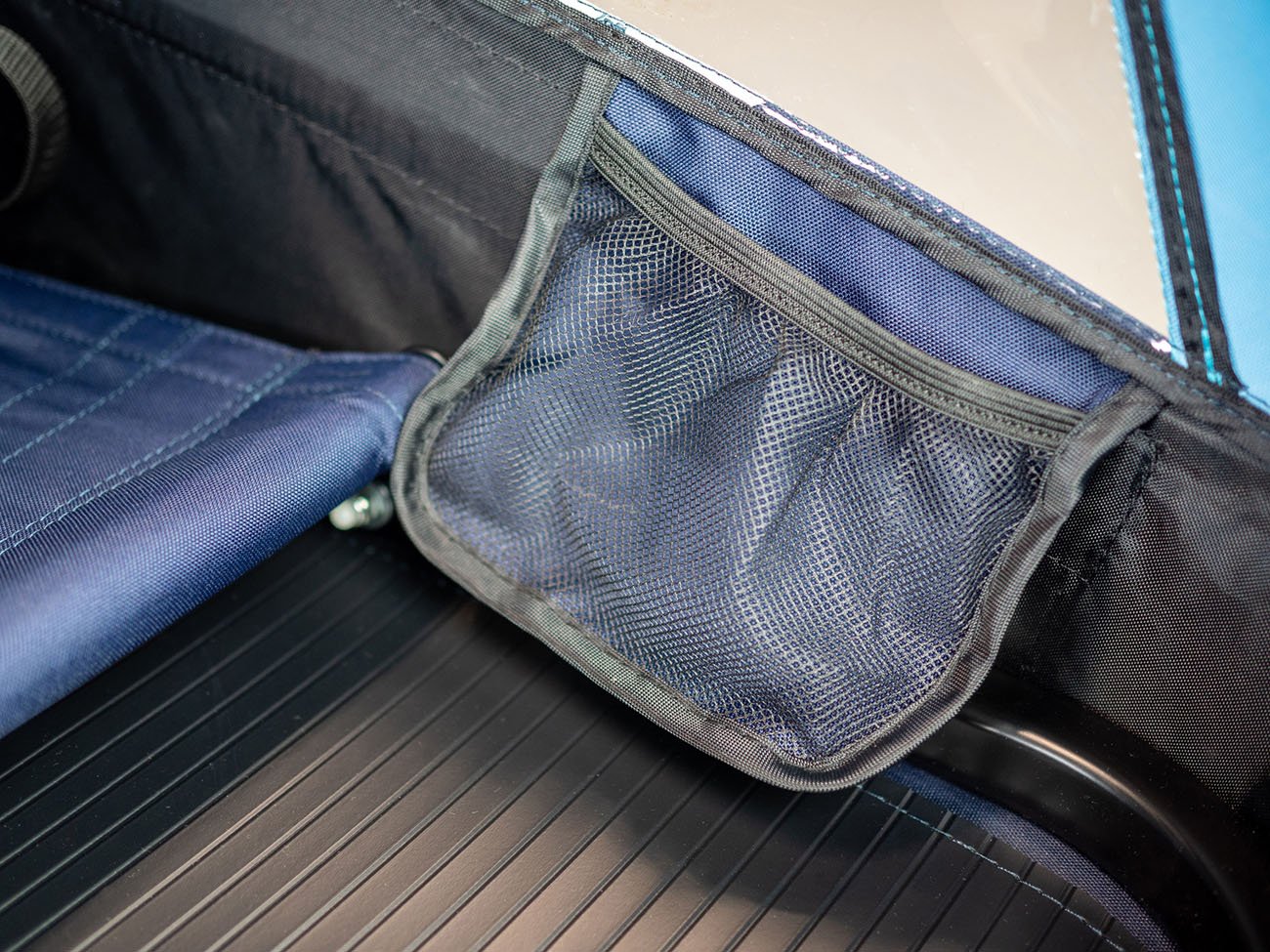 pevná kostra z certifikovaných materiálov, nepremokavý kryt, moskytiéra, plastové predné okno