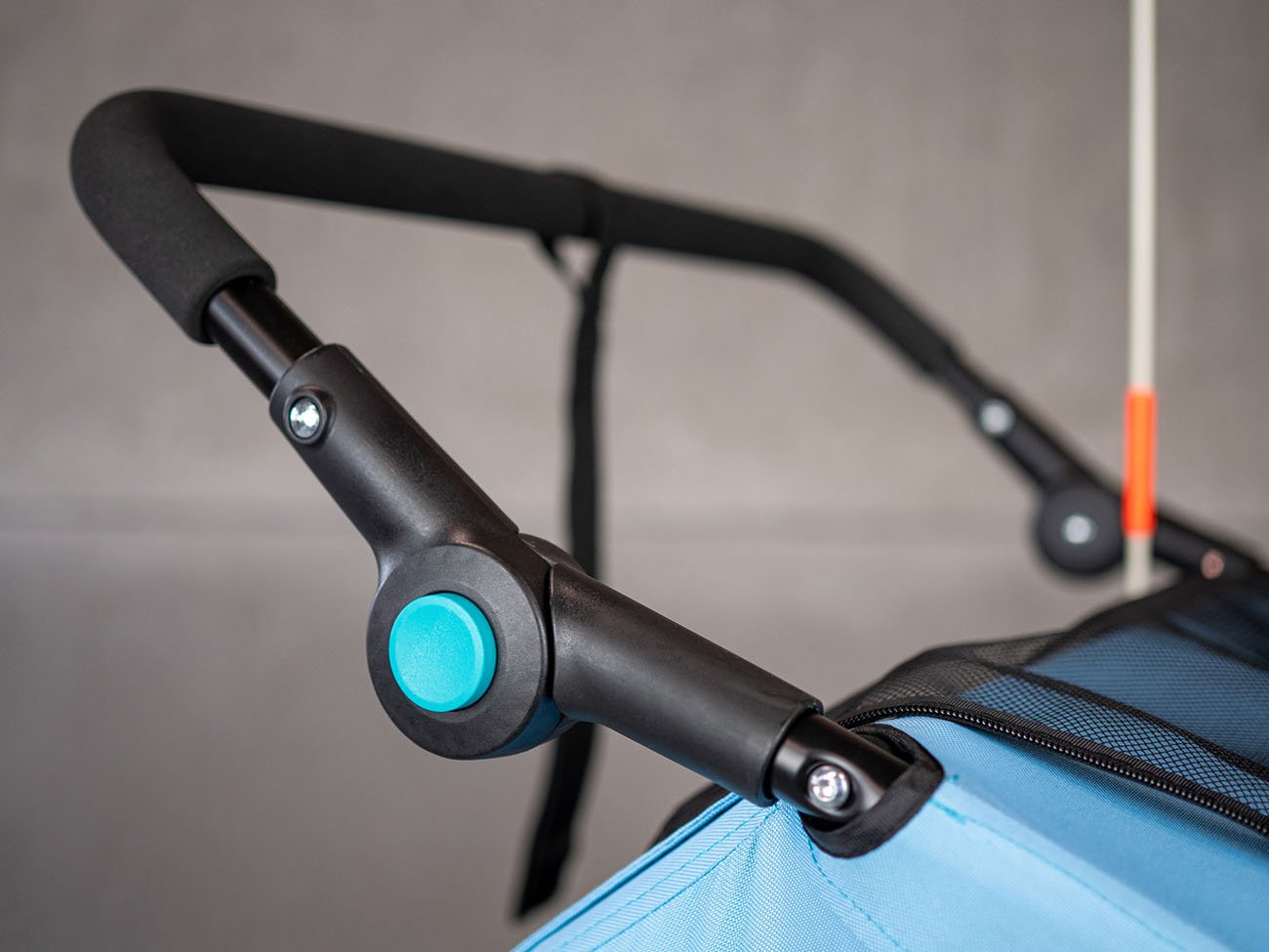 jednoduchá premena na trojkolesový športový kočík s nastaviteľnou výškou riadidiel