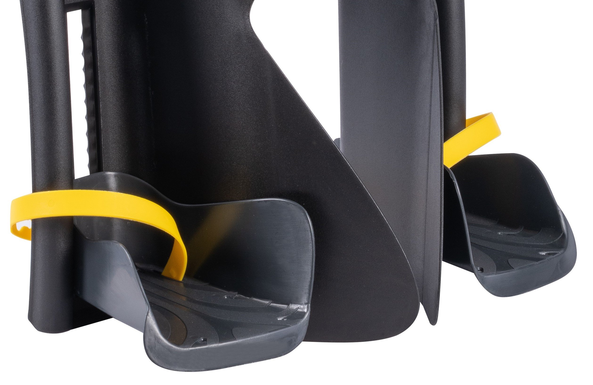 ZABEZPEČOVACÍ SYSTÉM: Sedačku možno pripevniť na nosič batožiny na zadnom nosiči bicykla. Upevnenie funguje pomocou zveráka, ktorý sa k nosiču batožiny dotiahne pomocou gombíka. Kompatibilné s nosičom batožiny s dĺžkou 120-175 mm. Na elektrobicykloch kompatibilné s nosičmi batožiny s dĺžkou do 185 mm. Sedadlo má výnimočne pohodlnú bezpečnostnú pracku, ktorá sa upevňuje a uvoľňuje jednou rukou.