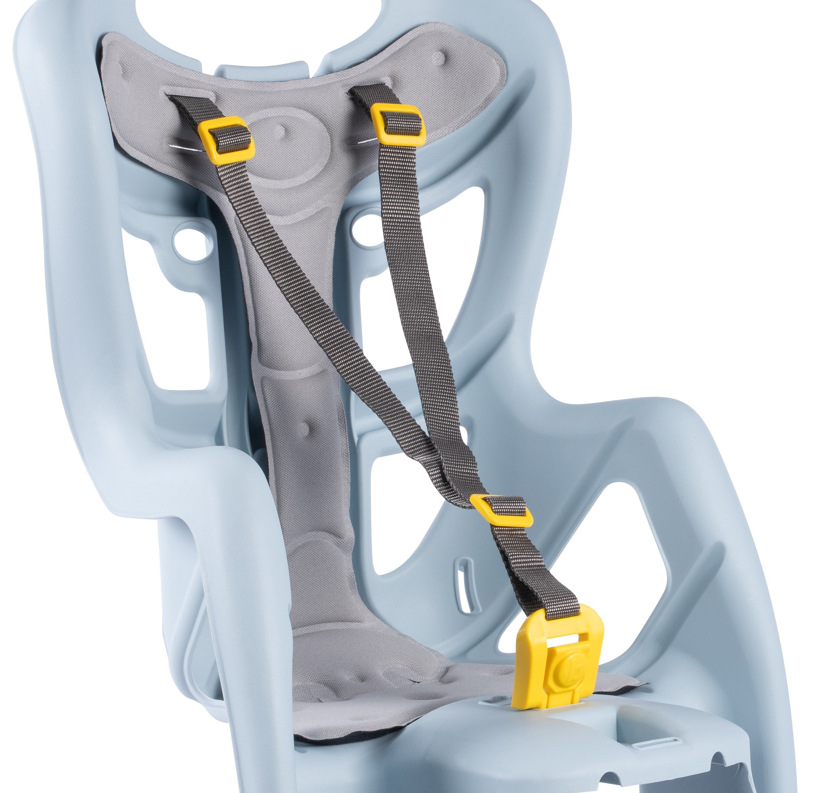 ZABEZPEČOVACÍ SYSTÉM: Sedačku možno pripevniť na nosič batožiny na zadnom nosiči bicykla. Upevnenie funguje pomocou zveráka, ktorý sa k nosiču batožiny dotiahne pomocou gombíka. Kompatibilné s nosičom batožiny s dĺžkou 120-175 mm. Na elektrobicykloch kompatibilné s nosičmi batožiny s dĺžkou do 185 mm. Sedadlo má výnimočne pohodlnú bezpečnostnú pracku, ktorá sa upevňuje a uvoľňuje jednou rukou.