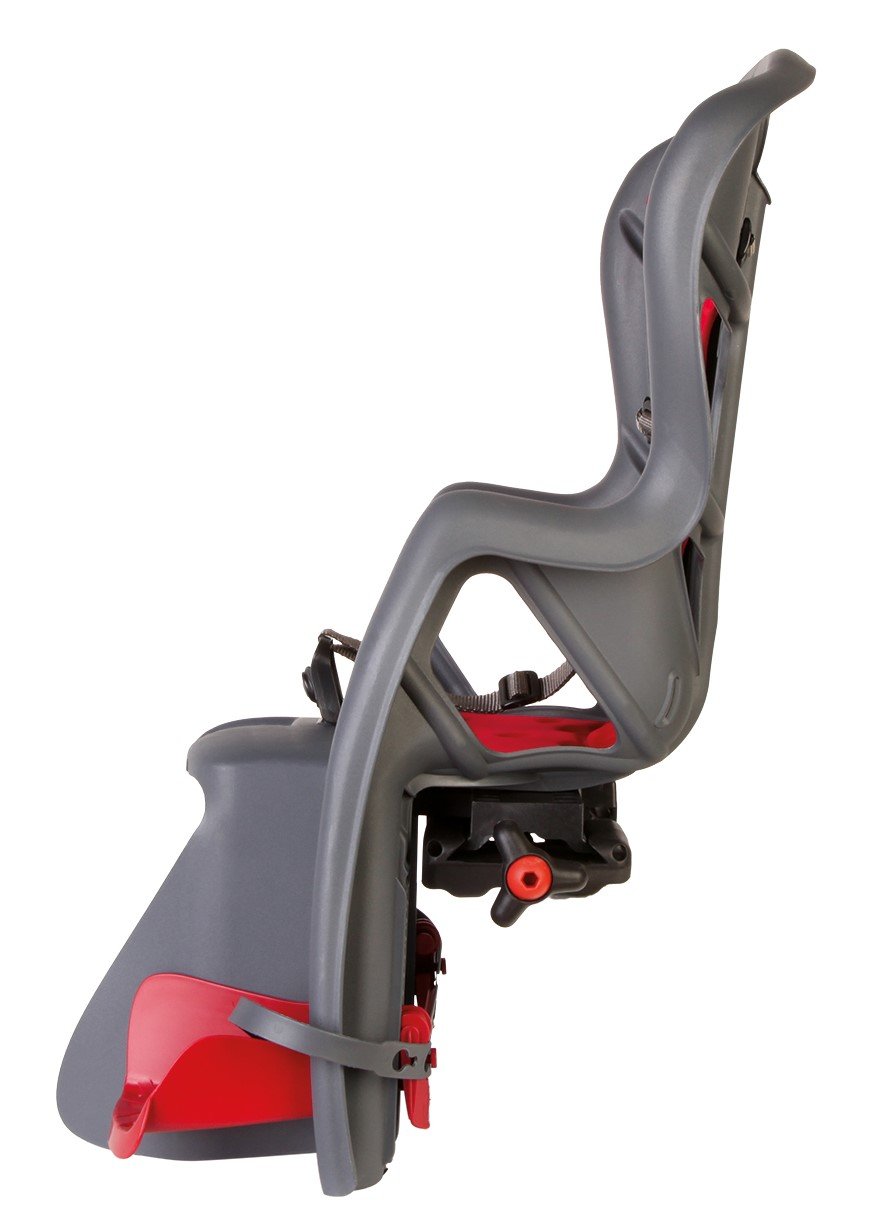 ZABEZPEČOVACÍ SYSTÉM: Sedačku možno pripevniť na nosič batožiny na zadnom nosiči bicykla. Upevnenie funguje pomocou zveráka, ktorý sa k nosiču batožiny dotiahne pomocou gombíka. Kompatibilné s nosičom batožiny s dĺžkou 120-175 mm. Na elektrobicykloch kompatibilné s nosičmi batožiny s dĺžkou do 185 mm. Sedadlo má výnimočne pohodlnú bezpečnostnú pracku, ktorá sa upevňuje a uvoľňuje jednou rukou.