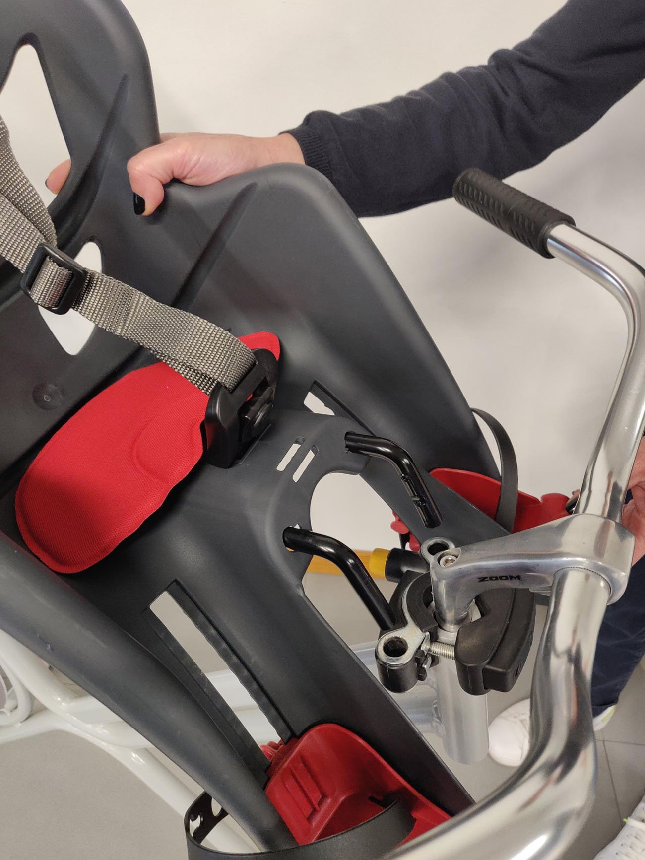 Špičková Detská cyklosedačka s predným upevnením je kvalitný model s veľkými vetracími otvormi, vysokými bočnicami, ktoré udržia deti.