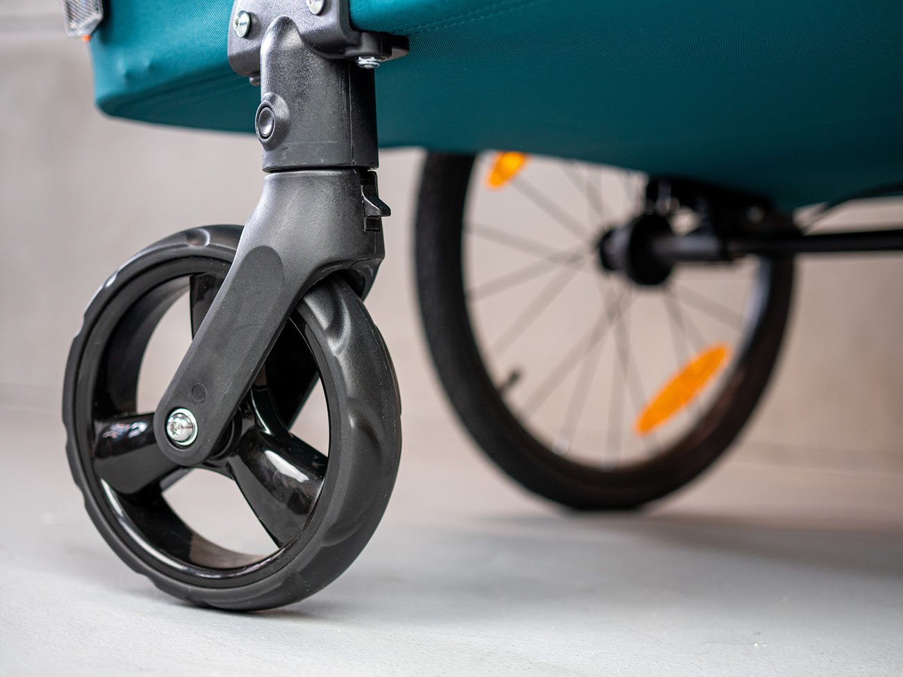 20" kolesá - dve pevné, tretie otočné na premenu vozíka na kočík (zároveň sa ťažná tyč ľahko zasunie do rámu vozíka,