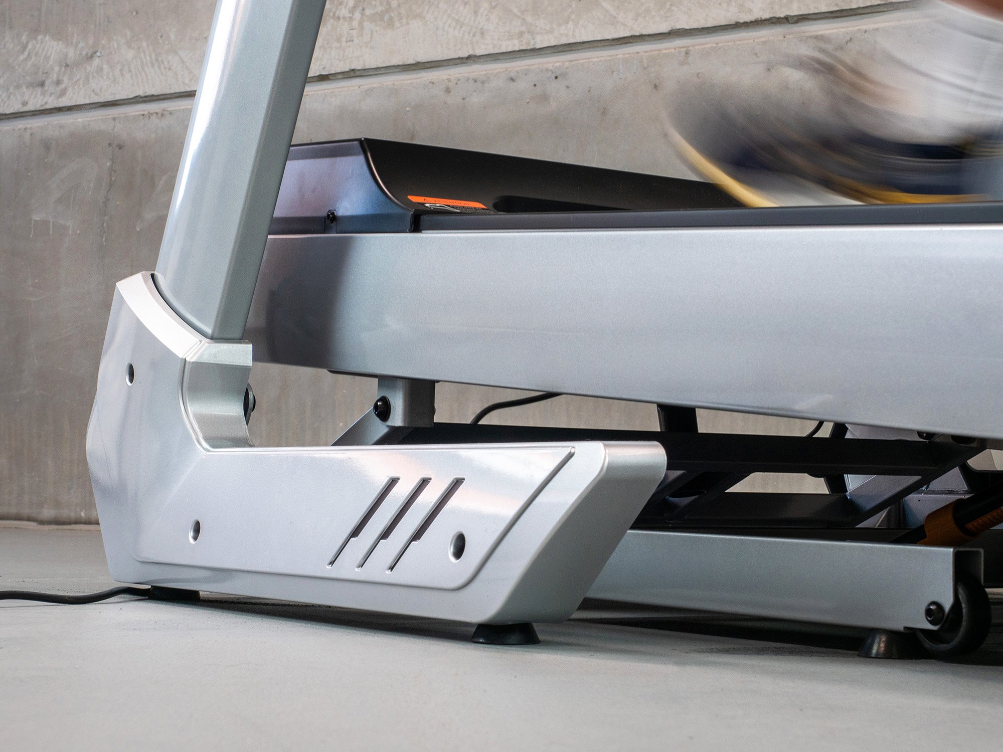 Vysoko odolný a pružný dvojvrstvový polyuretánový bežecký pás je odpružený v 10 bodoch, čo umožňuje pohodlné používanie pásu bez nadmerného zaťaženia dolných končatín a chrbtice. Okrem toho má 4 špeciálne tlmiace vložky medzi bežeckou plochou a kovovým rámom pásu, ktoré znižujú hluk počas používania a tiež tlmia nárazy nôh na pás pri behu.