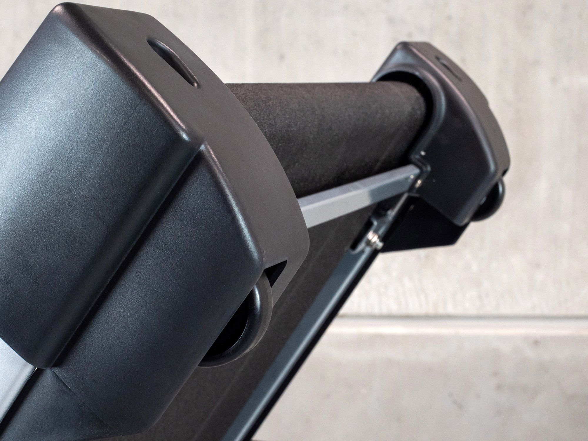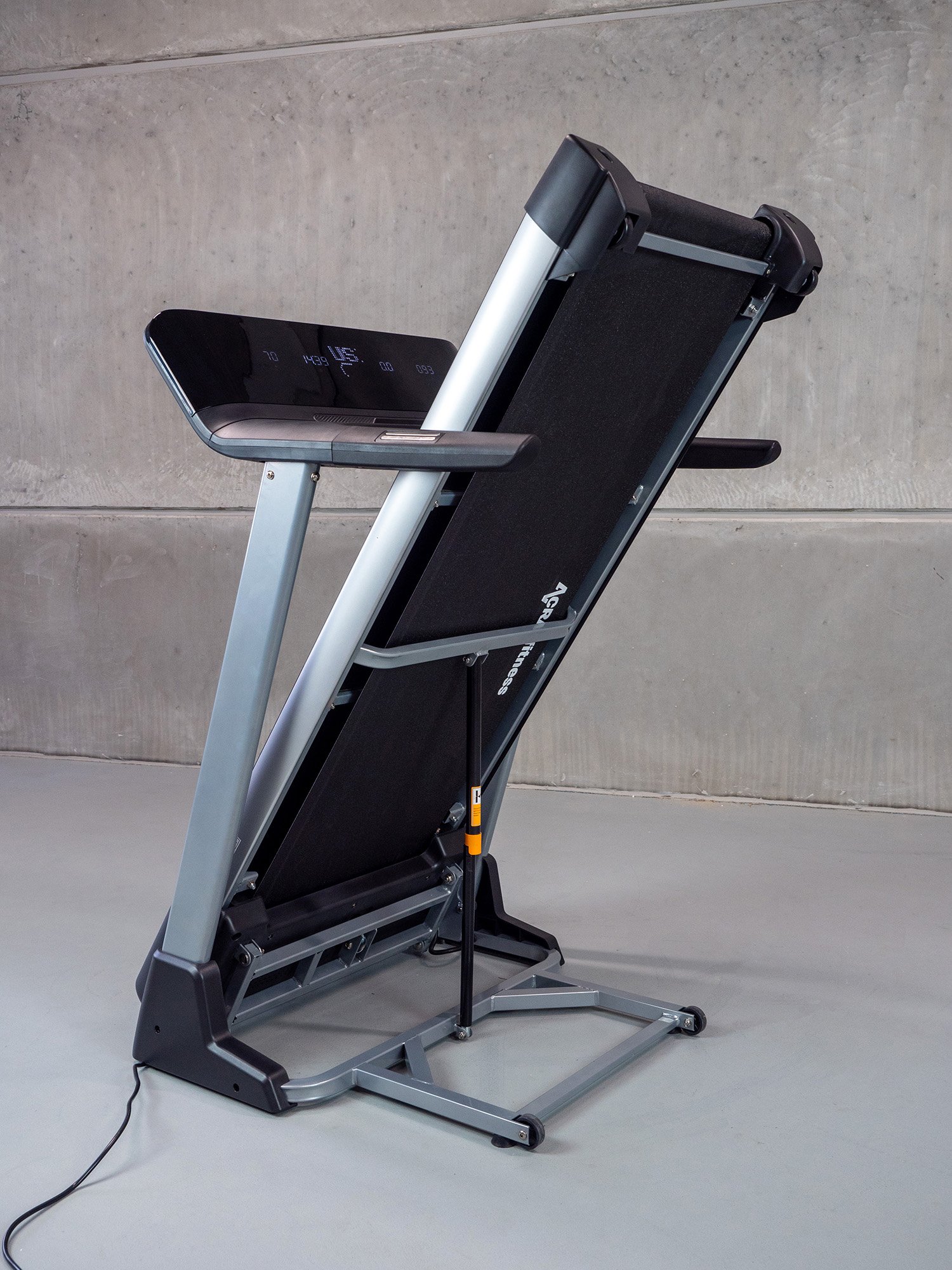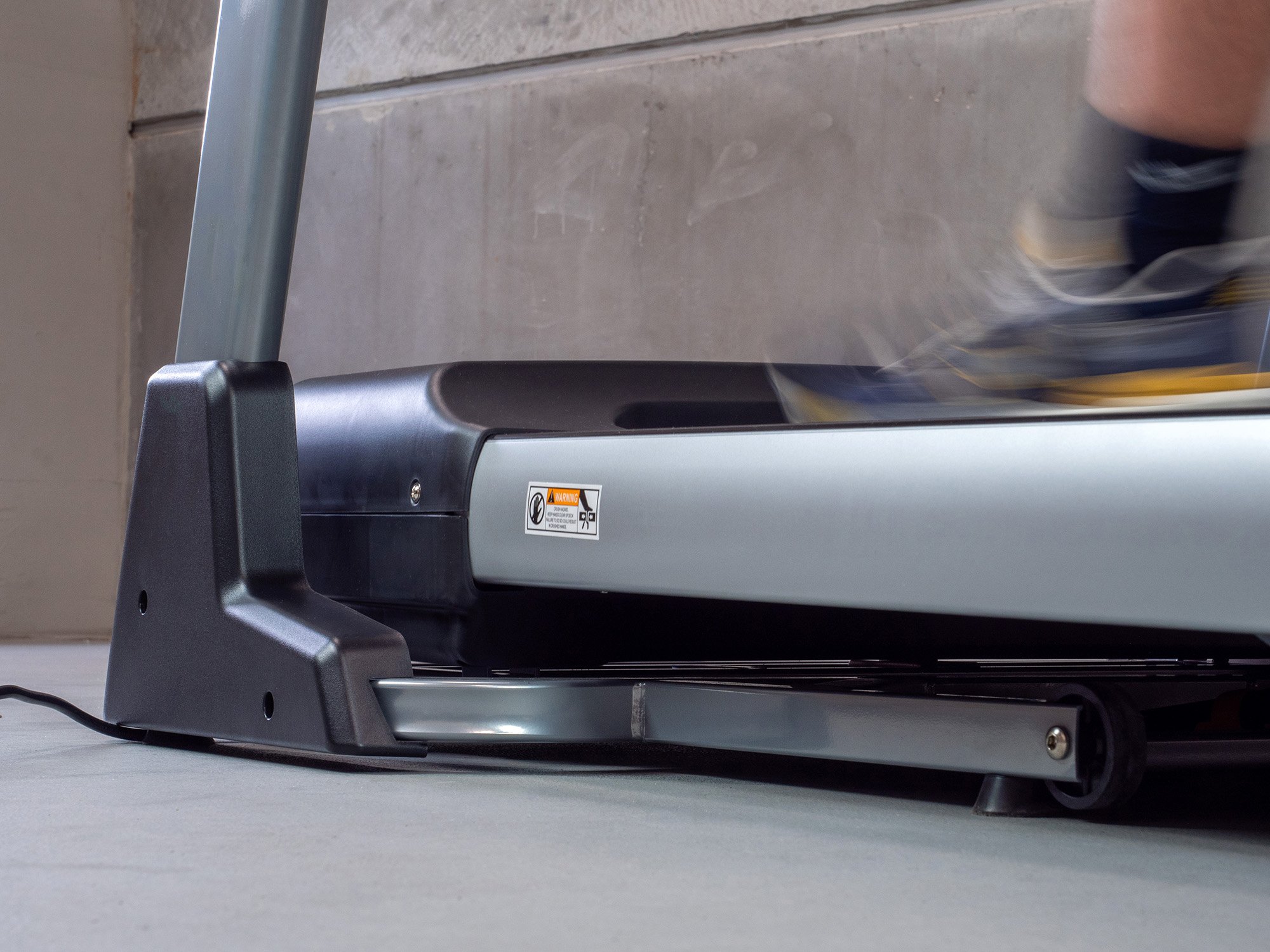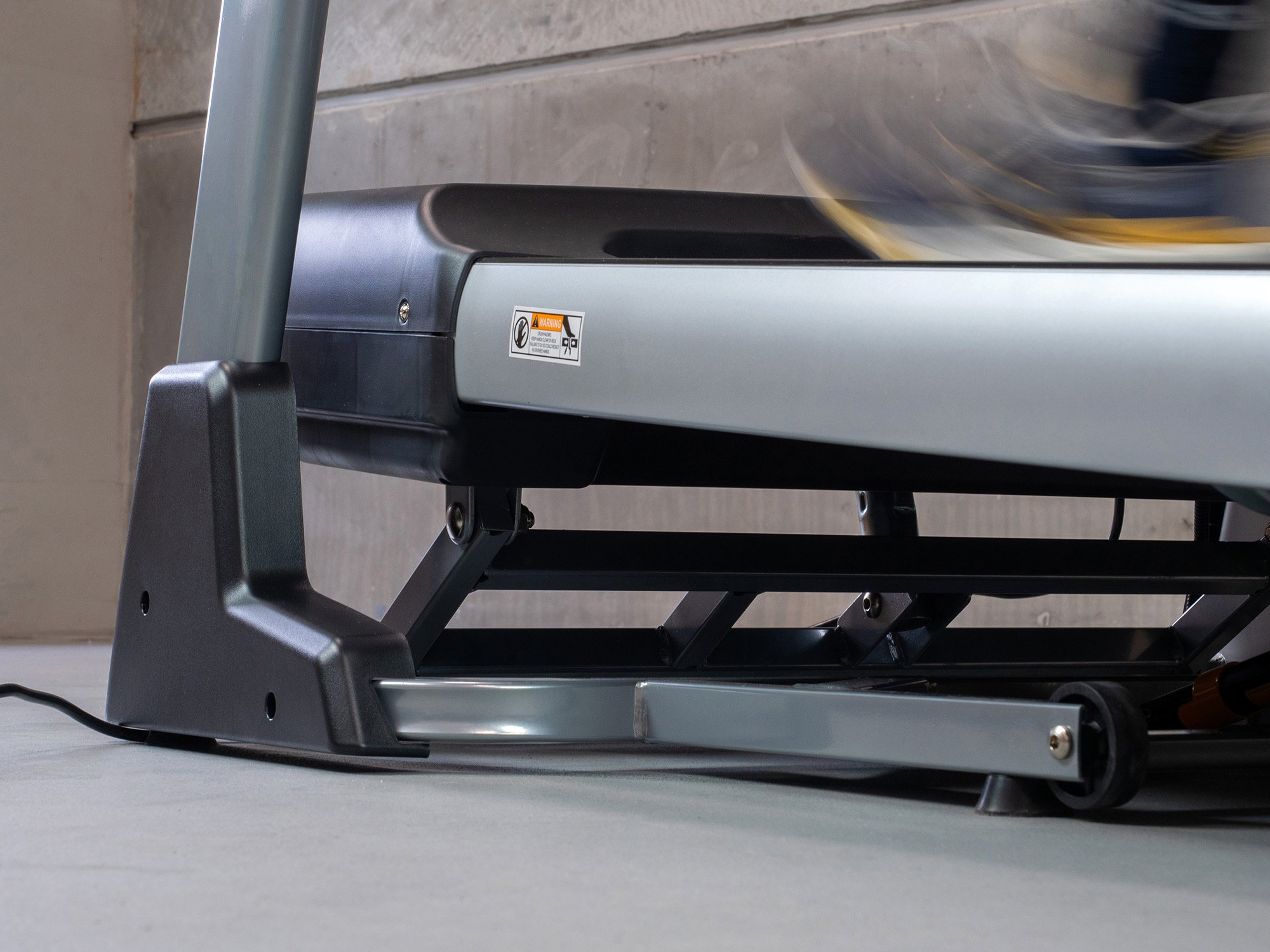 Na úsporné skladovanie možno bežeckú časť zdvihnúť medzi rukoväte a vďaka kolieskam ju ľahko premiestniť do skladovacej polohy.