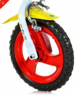 Detský bicykel BING s licenciou Dino Bikes má prepracovaný dizajn, ktorý dodáva bicyklu športový vzhľad.Veľkou výhodou všetkých našich bicyklov talianskej výroby je, že sú CUT FOR TRANSPORT a na 95 % zmontované. Zostáva už len nasadiť riadidlá, sedlo a pripevniť blatníky (ak sú súčasťou balenia). Bicykel má 12" (palce = 31 cm) plastové lúčové kolesá, plastové pneumatiky s penovým polstrovaním EVA, bicykel má STOJANOVÝ ŤAH, bezpečnostnú koncovku riadidiel, prídavné balančné kolieska. Odporúčané pre výšku 87-110 cm. Bicykel je vyrobený s ľahkým rámom z ocele HiTech, odporúča sa pre deti od 3 - 4 rokov, nosnosť bicykla je 40 kg. Bicykel je vybavený prednou brzdou so strmeňom. Hmotnosť 6,8 kg. Bicykel je vyrobený v EÚ a má všetky bezpečnostné certifikáty. Bicykel je zabalený v bielej potlačenej krabici s rozmermi 77 x 40 x 16 cm. Výška sedla od zeme je min. 46 cm, max. 56 cm.