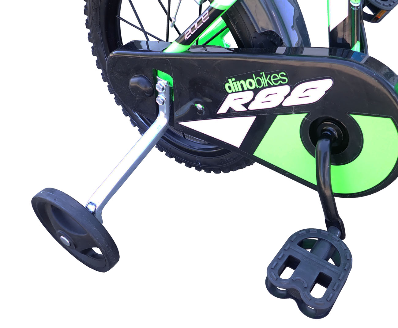 Detský bicykel Dino Bikes má prepracovaný dizajn, ktorý mu dodáva atraktívny vzhľad. Bicykel má plastové ráfiky 14" (palcov = 36,5 cm), nafukovacie pneumatiky, voľnobeh…