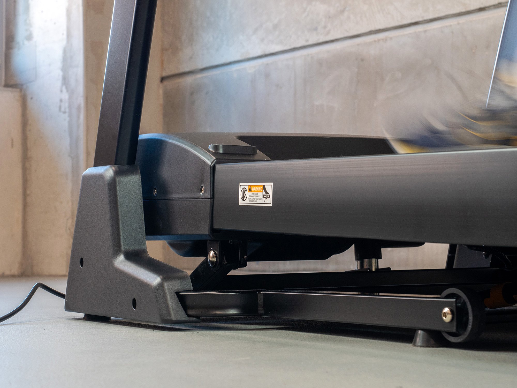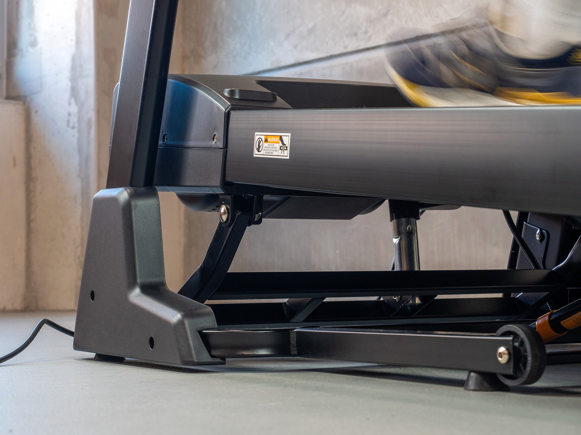 Na úsporné skladovanie možno bežeckú časť zdvihnúť medzi rukoväte a vďaka kolieskam ju ľahko premiestniť do skladovacej polohy.