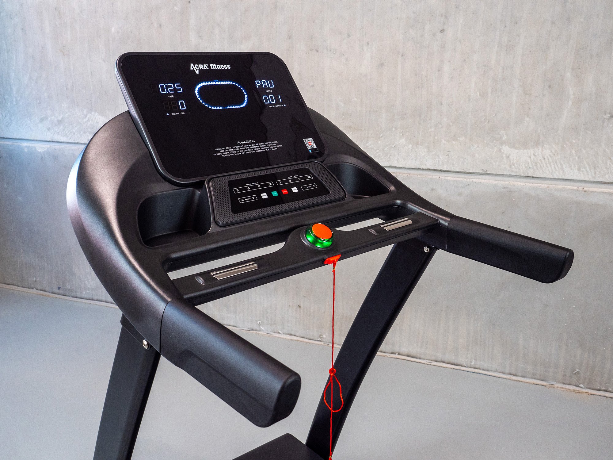 Pás je vybavený aj bezpečnostnou rýchlobrzdou, ktorá vám v prípade potreby umožní okamžite zastaviť. Sklon pásu možno elektricky nastaviť v rozsahu 0 - 15 % priamo z rukovätí, čo umožňuje plynulé zmeny počas behu.