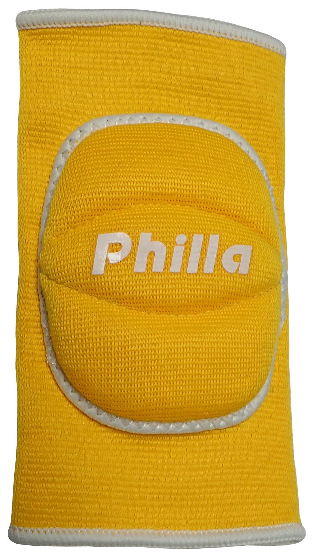 Volejbalové chrániče - kolenné chrániče Philla vystužené - veľkosť S žltá. Sú vyrobené z materiálu odolného proti prepichnutiu na báze polyesteru a bavlny.