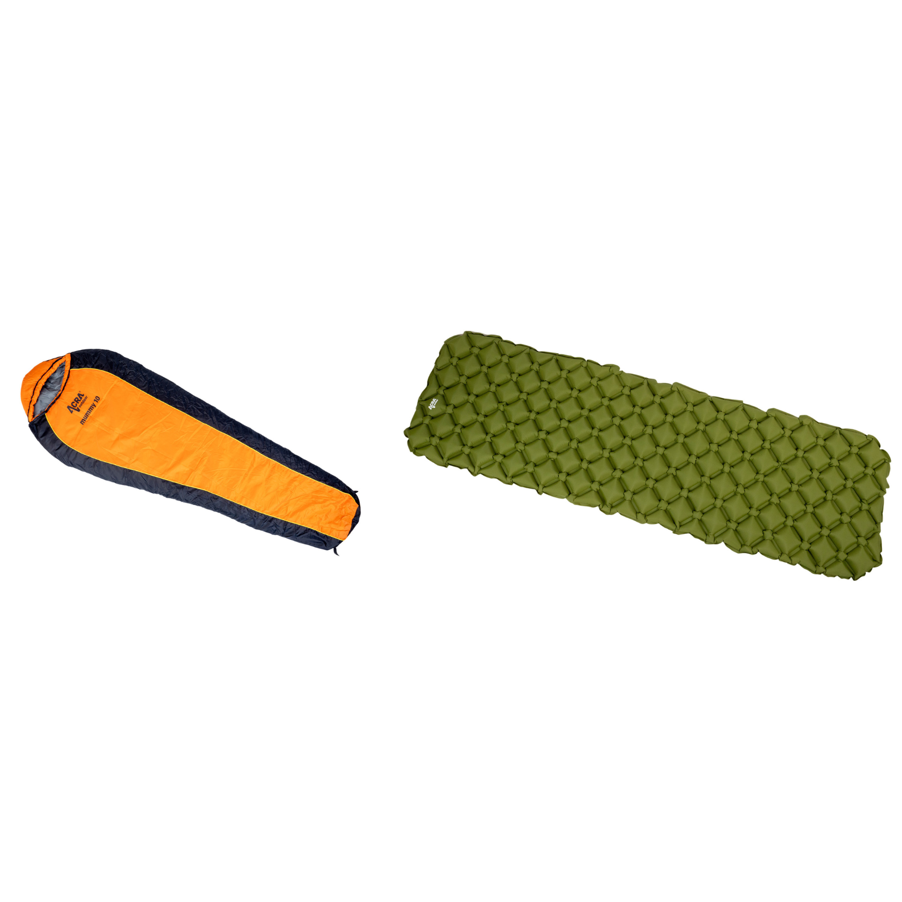 Balenie obsahuje spací vak Acra Mummy 10 a nafukovacie nosidlo L140ZEL - zelené.