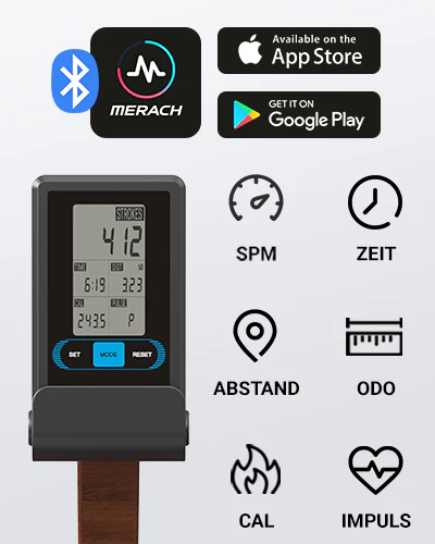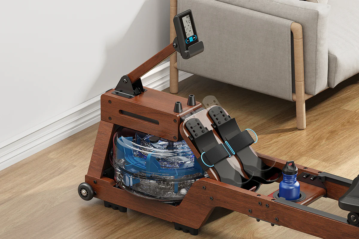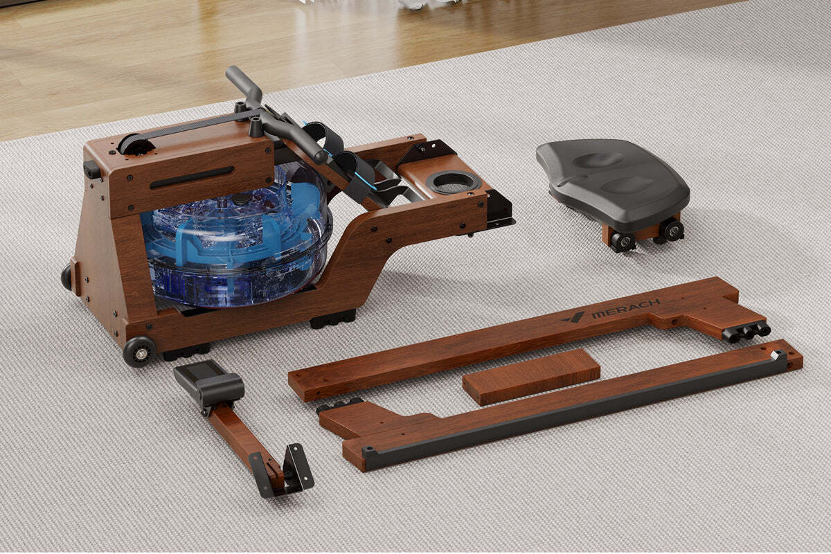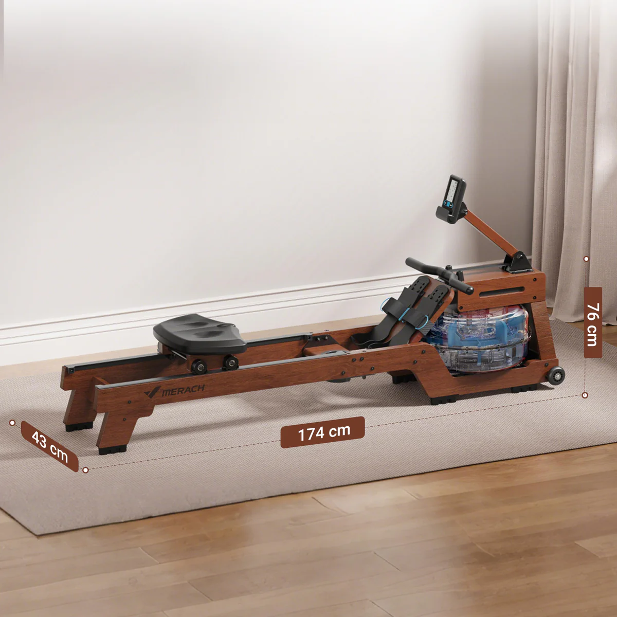 Merach - MERACH R14 Vodní veslovací trenažér, dřevěný, 22 litrů, nosnost 150 Kg