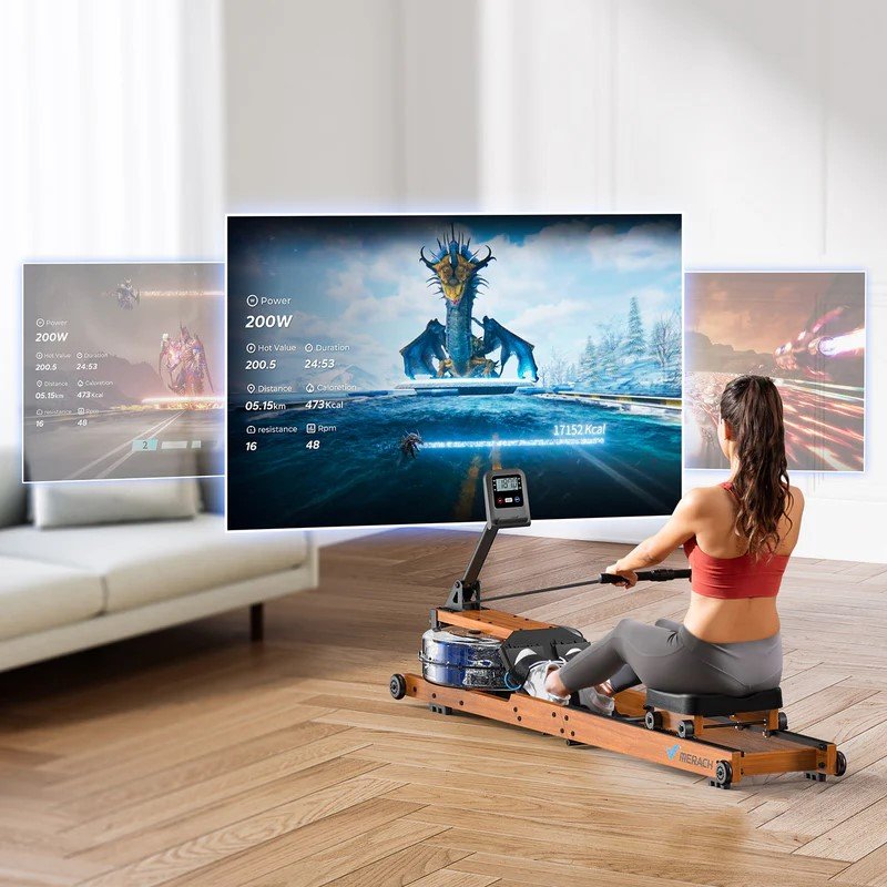 Odporový systém:Čistá vodná odolnosťÚrovne odolnosti:Maximálna vodná hladinaNastavenia odolnosti:Vodná odolnosť - nastavenie objemu vodyPádla: 2 pádlaMateriál vodnej nádrže: PolykarbonátObjem vodnej nádrže: Plná - 14 lMateriál rámu:Gumové drevo + oceľĎalšie vlastnosti:Vrátane elektrickej vodnej pumpy a vodného filtraSkladací mechanizmus: Skladacia koľajnicaNapájanie:BatériaMaximálna nosnosť: 180 kgMateriál rukoväte:PenaMateriál ťažného lana:NylonRozmer rukoväte: 435 mmNastavenie pedálov: 6 nastaviteľných dĺžokRozstup pedálov: 30 mmTyp koľajnice: Dvojitá koľajnicaMateriál koľajnice: Gumové drevoMateriál koľajnice:Dĺžka koľajnice: 900 mmDĺžka vnútornej medzery: 1173 mmSklon koľajnice: žiadnyVhodná výška: 119 cm - 200 cmMateriál sedadla: PU pena (ergonomická)Výška sedadla od podlahy: 220 mmMateriál valčeka sedadla: N/ATyp displeja:LED elektronický displejInformácie na displeji:Čas, čas/500 m, vzdialenosť, kalórie, SPM, watty, zábery, celkový počet záberov, tepová frekvenciaStojan na iPad: ?Monitorovanie srdcového tepu: žiadneMetóda komunikácie: BluetoothVstavané programy: žiadneAplikácie: MERACH, KinomapTrasy: ?Spôsob skladovania:Vertikálne skladanieZaberaný priestor (m3): 0,23Rozmery v zloženom stave: 530 * 440 * 955 mmRozmery v zloženom stave: 1845 * 440 * 710 mmRozmery balenia: 980 * 460 * 290 mmHmotnosť netto: 16,5 kgHmotnosť brutto: 23,3 kg