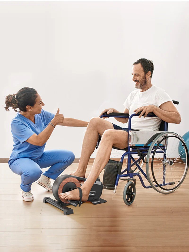 Ideálny pre kanceláriu, domácnosť alebo rehabilitáciu. Používajte ho na tréning nôh a rúk s individuálne nastaviteľným odporom. Tichý, stabilný a ekologický - na efektívny tréning kedykoľvek!