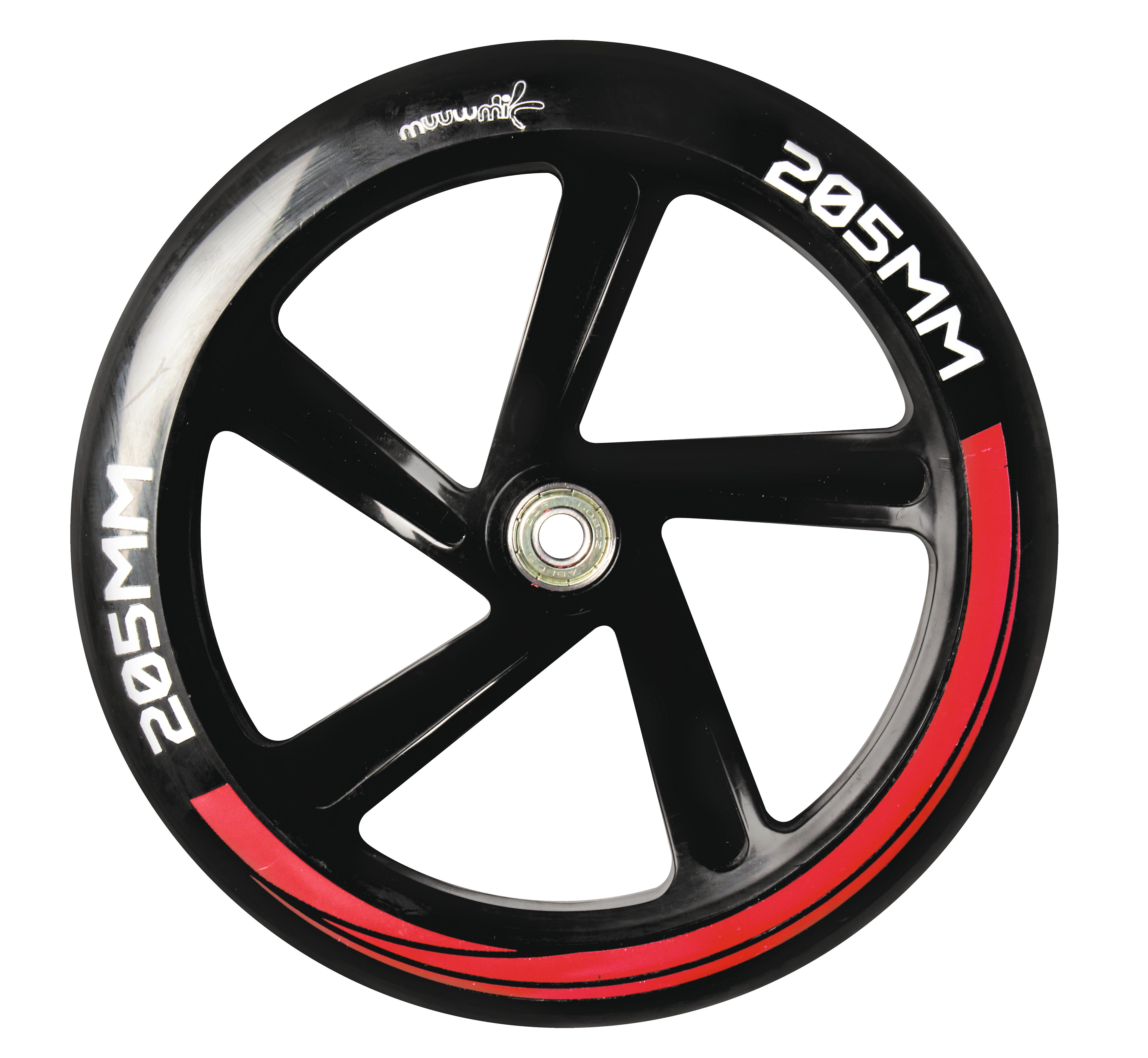 Tvarované PU kolieska 205 mm, vysoký odraz, 82A, guličkové ložiská ABEC 7 Trisková brzda na zadnom kolese, protišmykový brzdový pedál s vyrazeným logom