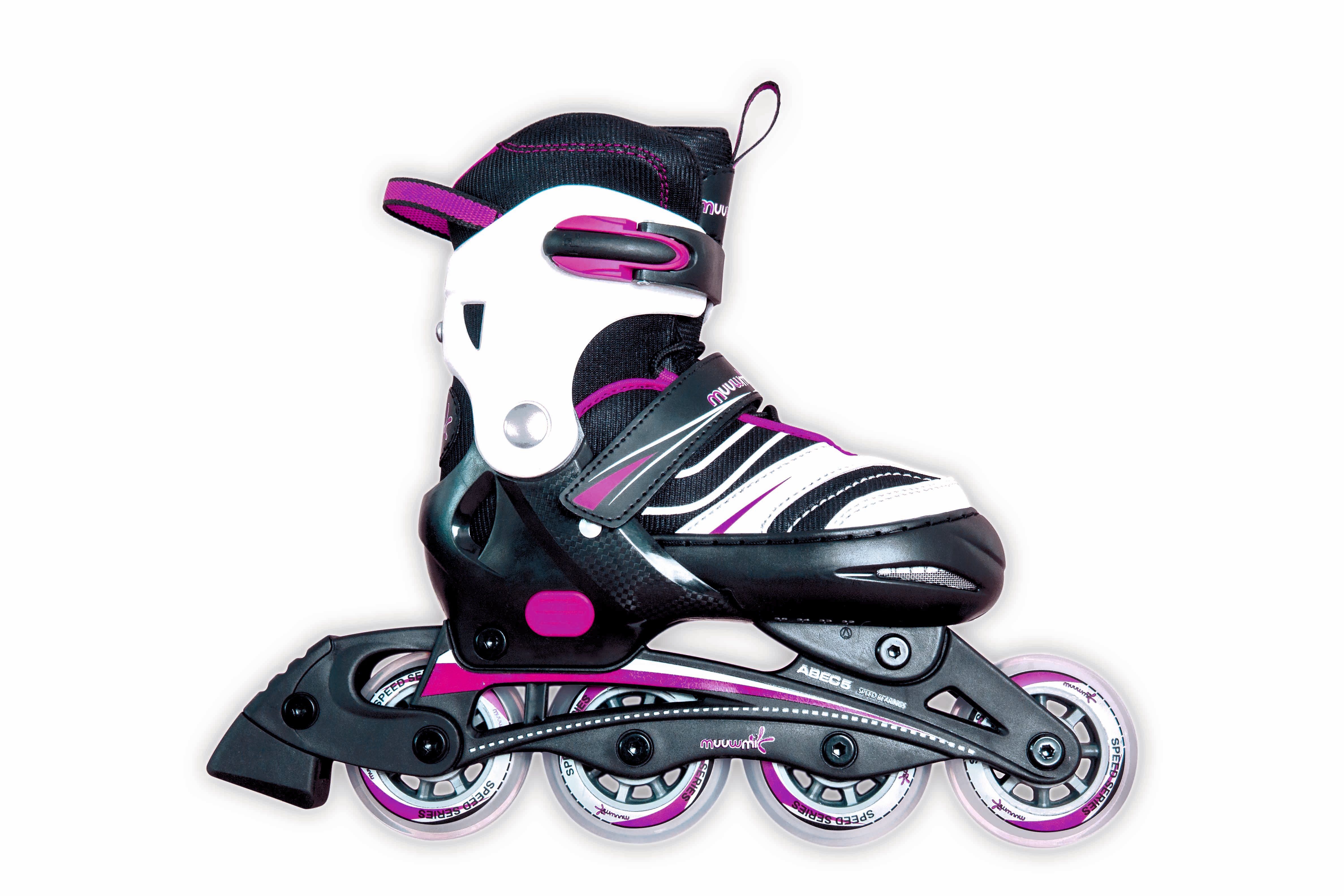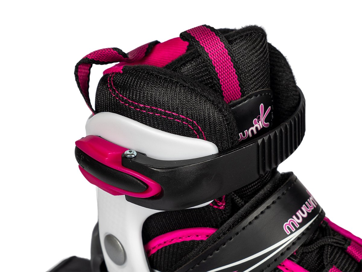 Prečo si vybrať korčule Muuwmi?- Nastaviteľná veľkosť: Korčule sa ľahko prispôsobia veľkosti nohy vášho dieťaťa, čím ušetria peniaze a zabezpečia pohodlie.- Kvalitné materiály: Odolná konštrukcia a kvalitné kolieska zabezpečia bezpečnú a hladkú jazdu.- Pohodlné a bezpečné:Mäkká vnútorná topánka a pevná spona zaistia, že sa vaše dieťa bude cítiť pohodlne a bezpečne.- Štýlový dizajn:Ružová farba a moderný dizajn urobia z vášho malého korčuliara hviezdu každého ihriska.