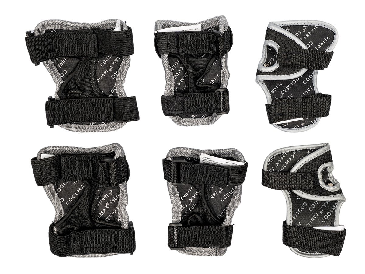 Ďalšie parametre:Hmotnosť: 0,45 kgSúčasťou sú: chrániče zápästia, chrániče kolien, chrániče lakťov - spolu 6 chráničovFarba: čiernaVeľkosť: XS