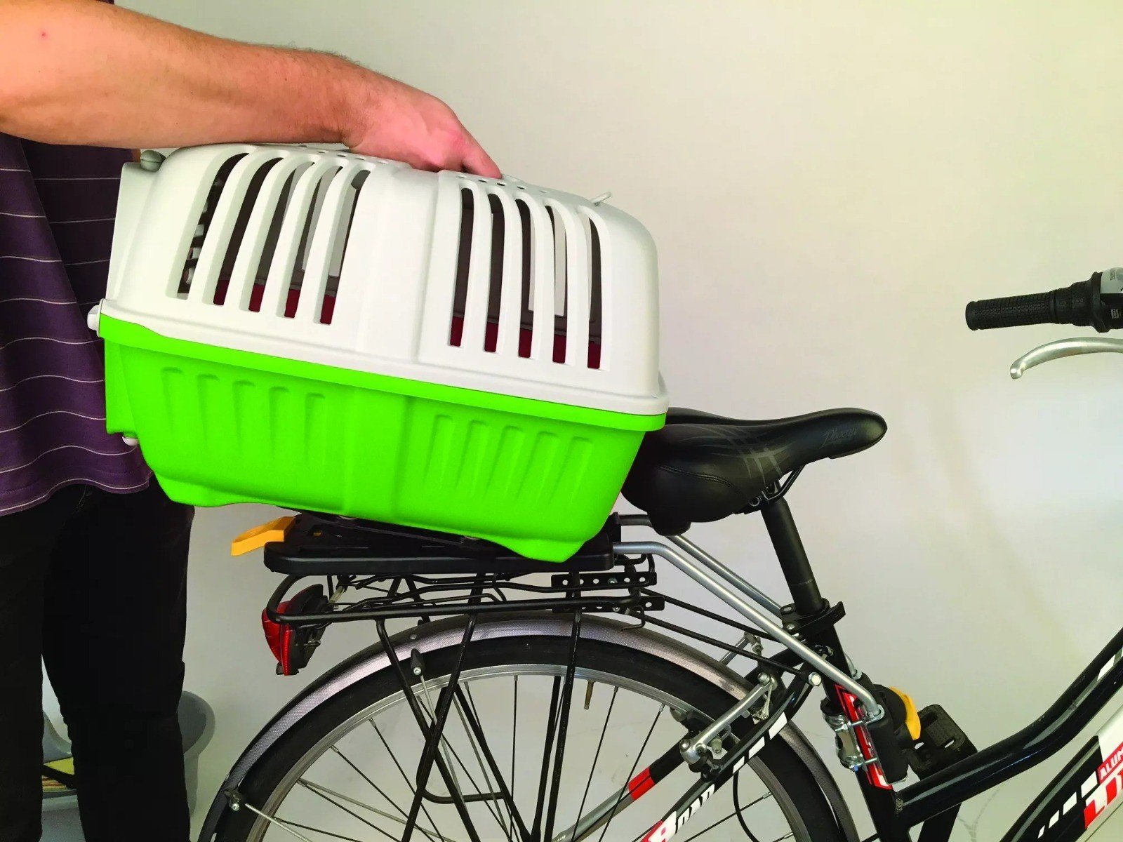 Box Peggy na bicykle a elektrobicykle v modernej béžovo-zelenej kombinácii je určený na prepravu psov a iných malých zvierat. Tento výrobok je od prestížnej talianskej značky Bellelli, známej výrobou detských sedačiek a sedadiel na bicykle. Peggy je robustný plastový košík, ktorý sa upevňuje za bicykel. Sieťované dvierka umožňujú jednoduché a rýchle otváranie a zatváranie. Vďaka systému Sherpa je inštalácia a demontáž koša jednoduchá. Kôš jednoducho odoberiete z bicykla, zatiaľ čo držiak zostane pripevnený k rámu bicykla na ďalšie použitie. Praktická rukoväť na hornej strane boxu uľahčuje jeho prenášanie. Box je úplne umývateľný.