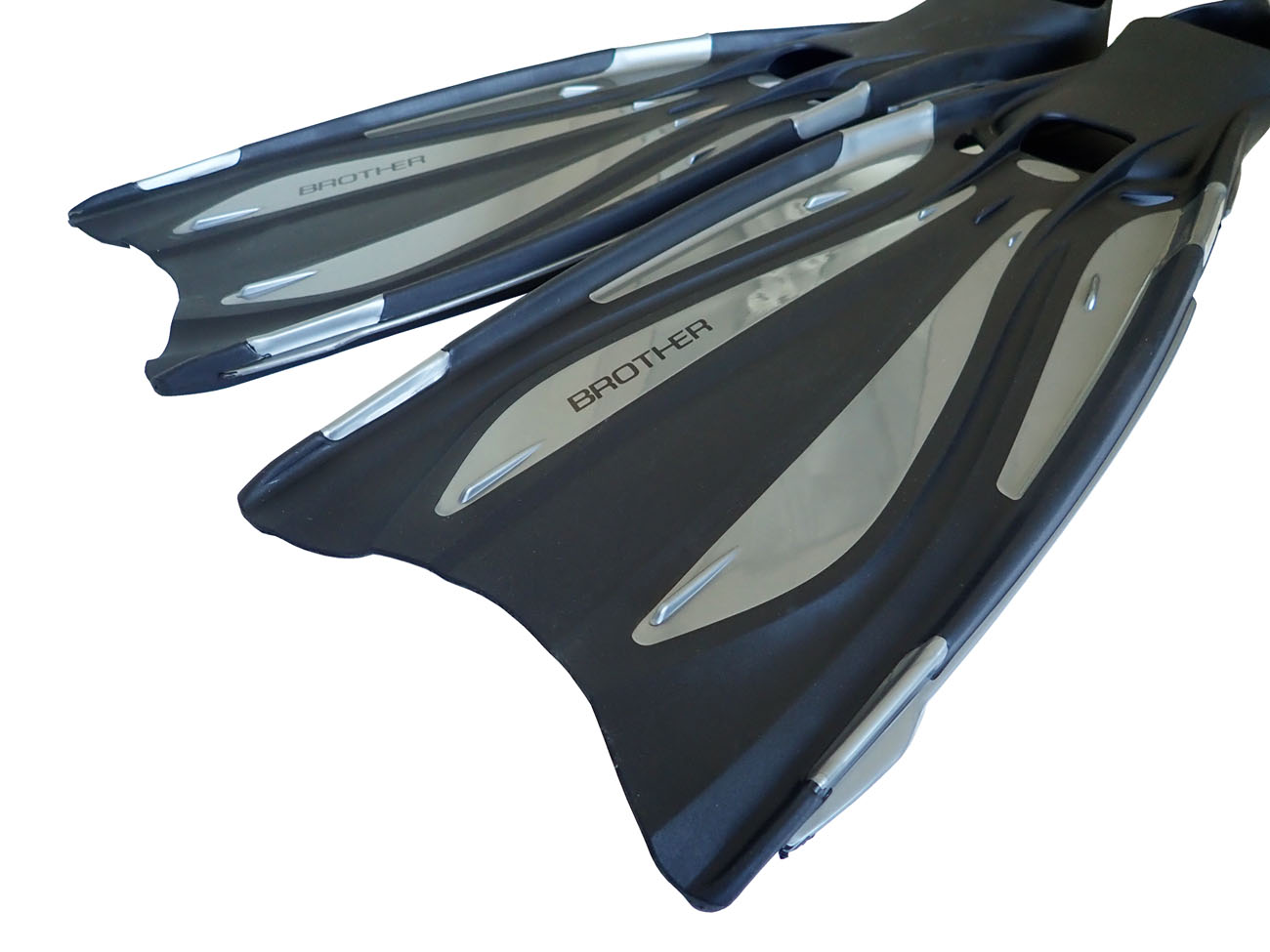 Plutvy BROTHER majú kvalitnú gumovú topánku, tašku na jednoduché prenášanie, veľkosť 38-39. Plutvy majú gumové elastické výstuhy pre lepší prietok vody. V sivej farbe.