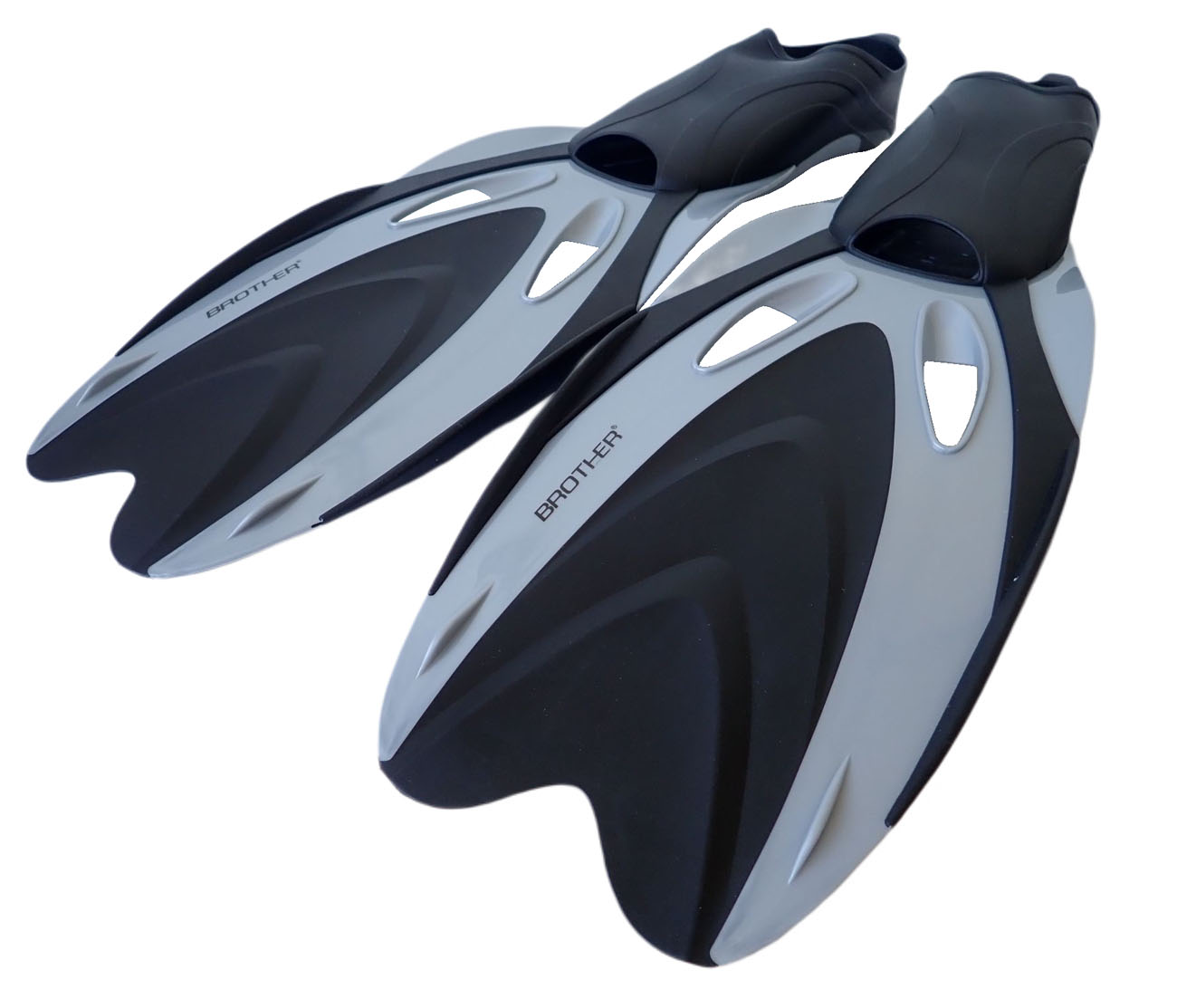 Plutvy BROTHER, gumová topánka, PE vrecko, veľkosť 40-42. Plutvy majú gumové elastické výstuhy pre lepší prietok vody.