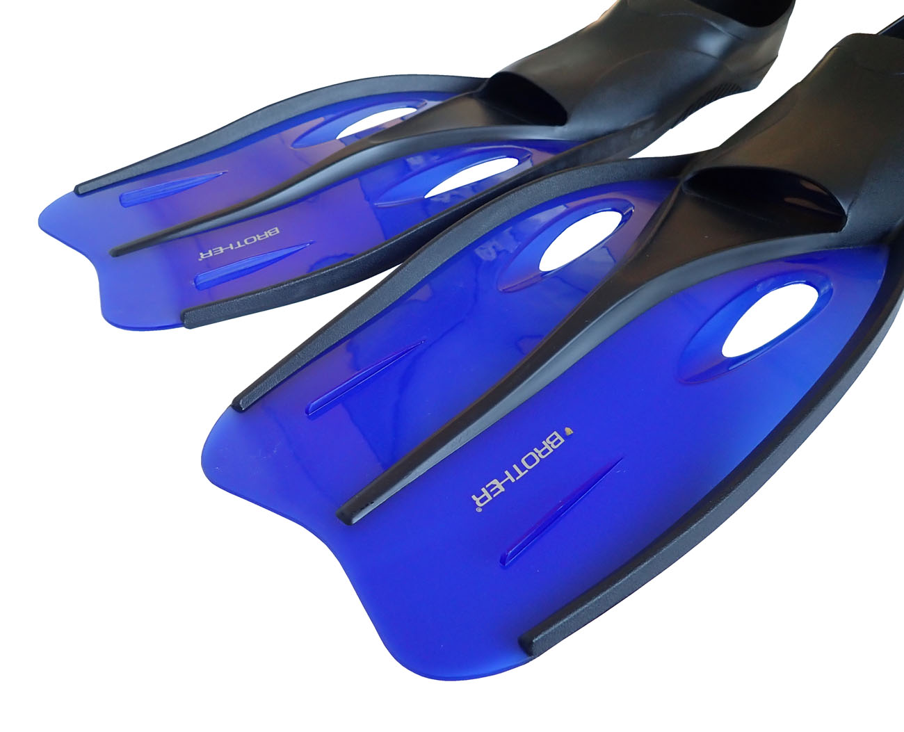 Plutvy BROTHER, gumová topánka, PE vrecko. Plutvy Brother vo veľkosti 44-46, modré. Plutvy majú gumové elastické výstuhy pre lepší prietok vody.