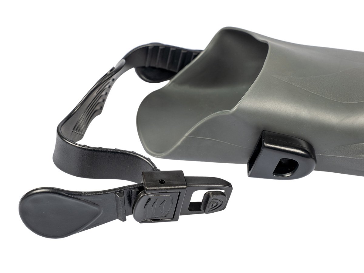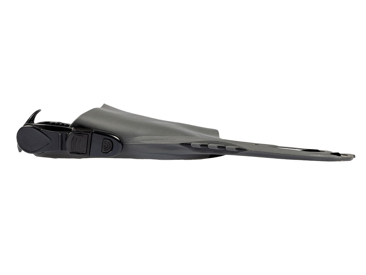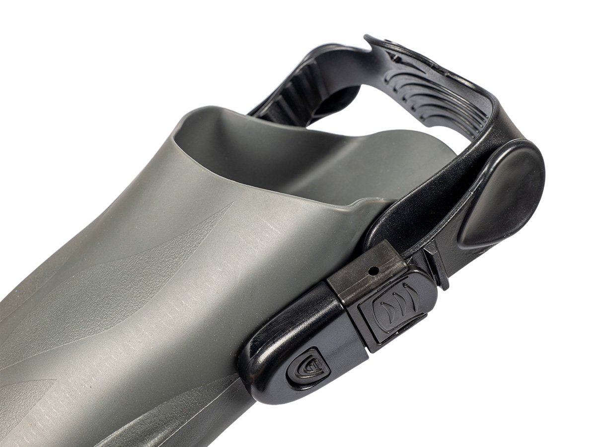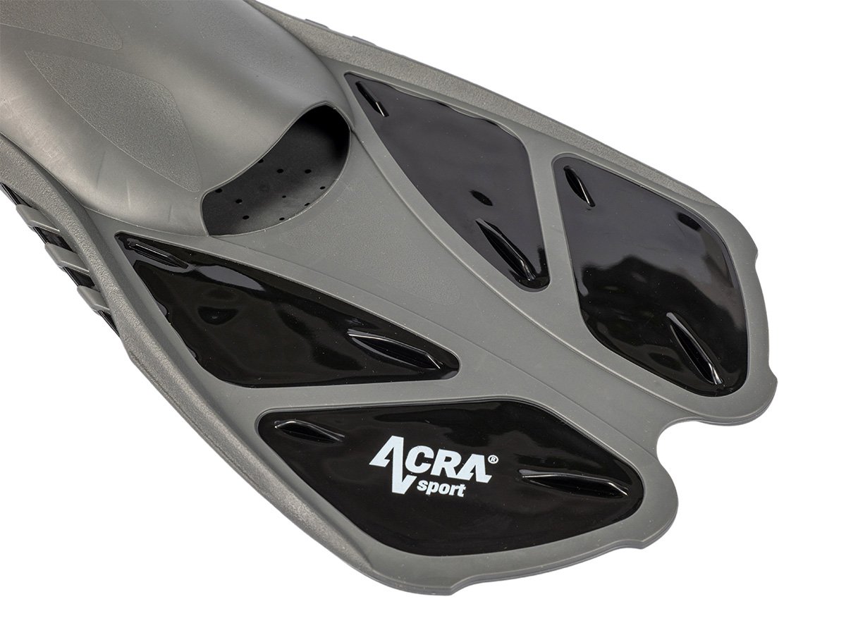 Gumová a protišmyková podrážka:Podrážka plutiev je pevná a je vybavená veľkými protišmykovými vložkami. To zaručuje nielen úplnú ochranu chodidla, ale aj vynikajúci prenos energie medzi chodidlom a plutvou pre účinné uchopenie.