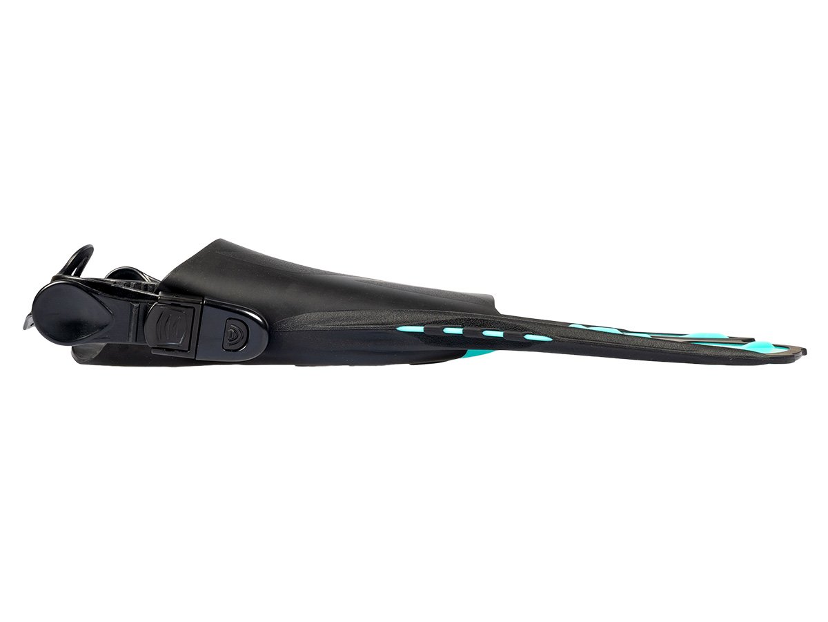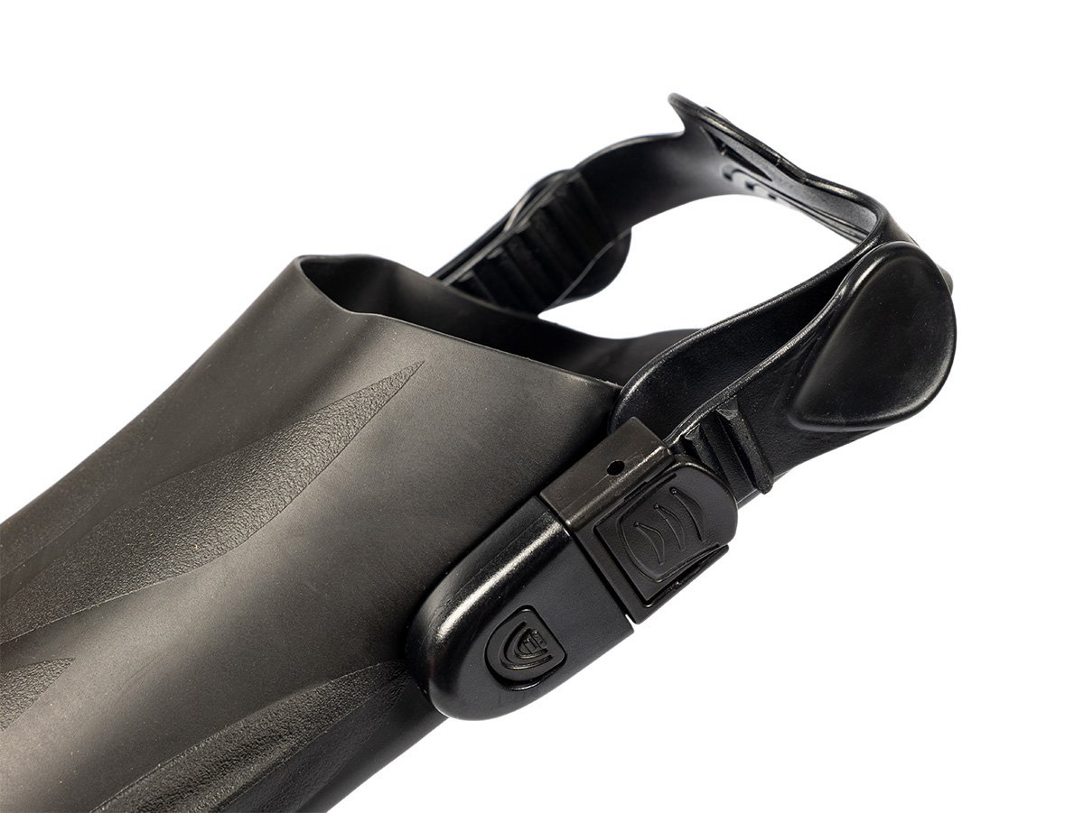 Gumová a protišmyková podrážka:Podrážka plutiev je pevná a je vybavená veľkými protišmykovými vložkami. To zaručuje nielen úplnú ochranu chodidla, ale aj vynikajúci prenos energie medzi chodidlom a plutvou pre účinné uchopenie.