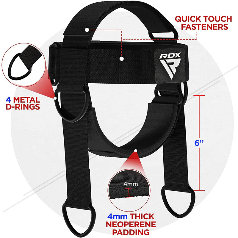 RDX posilňovač krku je určený na optimálne cvičenie krku a chrbta. Tento výrobok je nevyhnutný pri zmiešaných bojových umeniach a boxe, kde otrasy môžu narušiť nervový systém. Umožňuje vybudovať potrebné svaly, aby vás takéto poškodenie neovplyvnilo. Postroj na hlavu vám na rozdiel od iných posilňovacích zariadení pomáha špecificky sa zamerať na svaly rombické a trapézové. Postroj na krk vám umožňuje napodobniť účinky silového tréningu s neobmedzeným záťažovým potenciálom priamych záťaží, ktoré možno ľahko monitorovať v oblasti krku a chrbta. Okrem toho sa postroj Neck Harness často používa na podporu alebo korekciu problémov s držaním tela alebo na zníženie rizika zranenia spôsobeného nesprávnym držaním tela.
