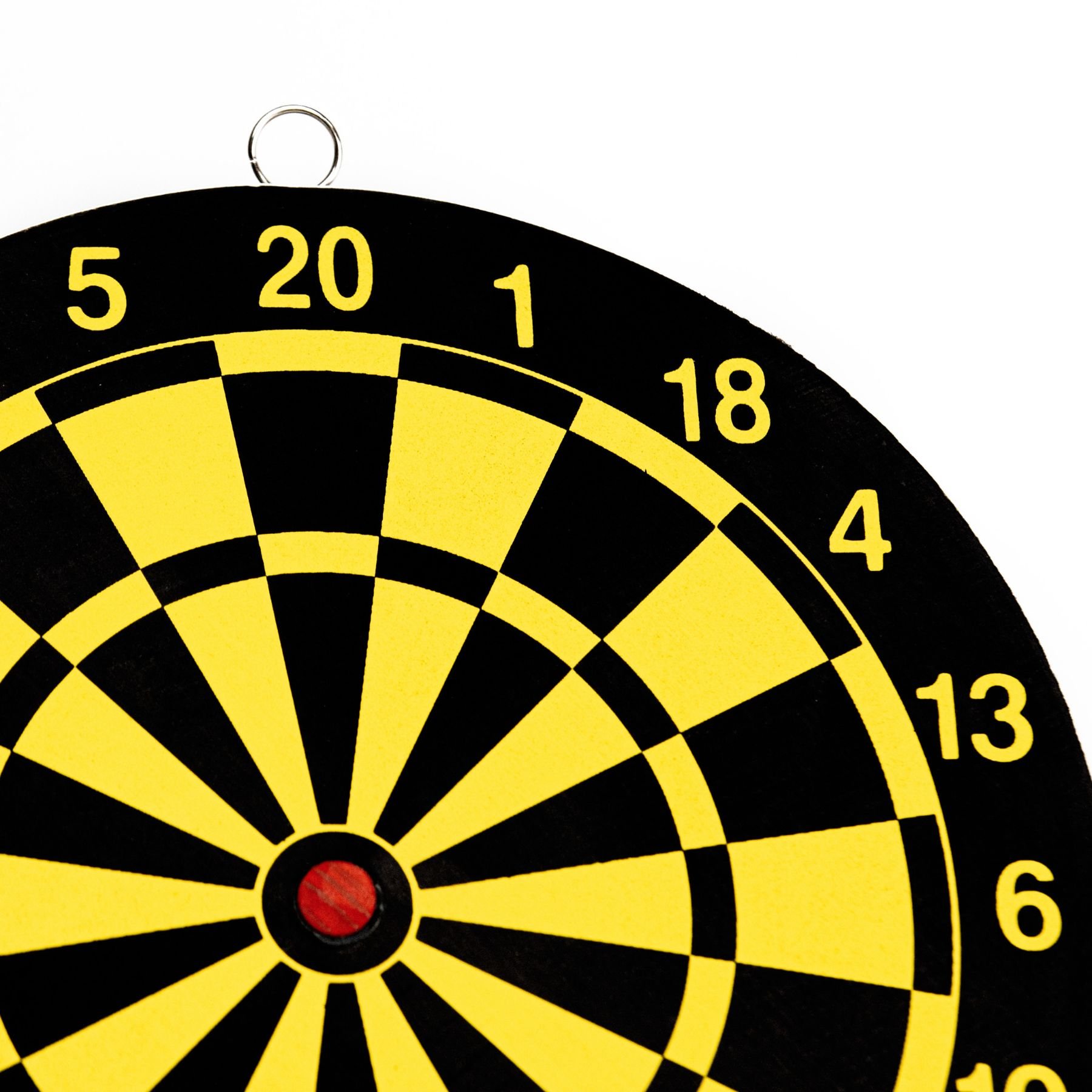 Disk (šípky):Rozmery: Priemer 10 palcov (približne 25 cm). Vďaka menším rozmerom je ideálny do detských izieb, herní alebo ako prenosná zábava.Dizajn:Mierka má klasické číselné rozloženie segmentov (1-20) v kontrastnej čierno-žltej farebnej kombinácii, čo poskytuje dobrú viditeľnosť na jednoduché zameranie.Materiál:Vyrobený z odolného materiálu, vhodný na rekreačné použitie.Šípky:Počet:Súčasťou sady sú 2 kusy šípok.Balenie:Celá sada je zabalená v priehľadnom blistrovom obale, ktorý chráni terč a šípky a je ideálny aj na vystavenie.Účel: Ideálne na rekreačné hranie, zabavenie detí, zlepšenie koncentrácie a presnosti.