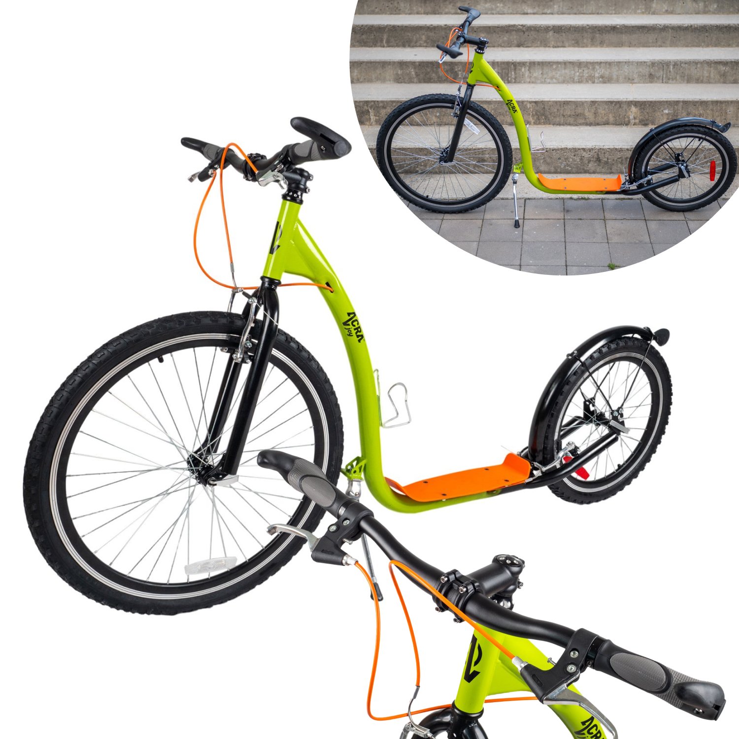Kolobežka Acra Joy Racer Kolobežka Acra Joy Racer je rýchla, športová, ideálna na jazdu po ceste, cyklotrase a v menšom teréne. Je vhodná pre jazdcov všetkých úrovní a je ideálna nielen na dochádzanie do práce alebo do školy, ale aj na zábavu a voľný čas, ako aj na výlety v teréne.