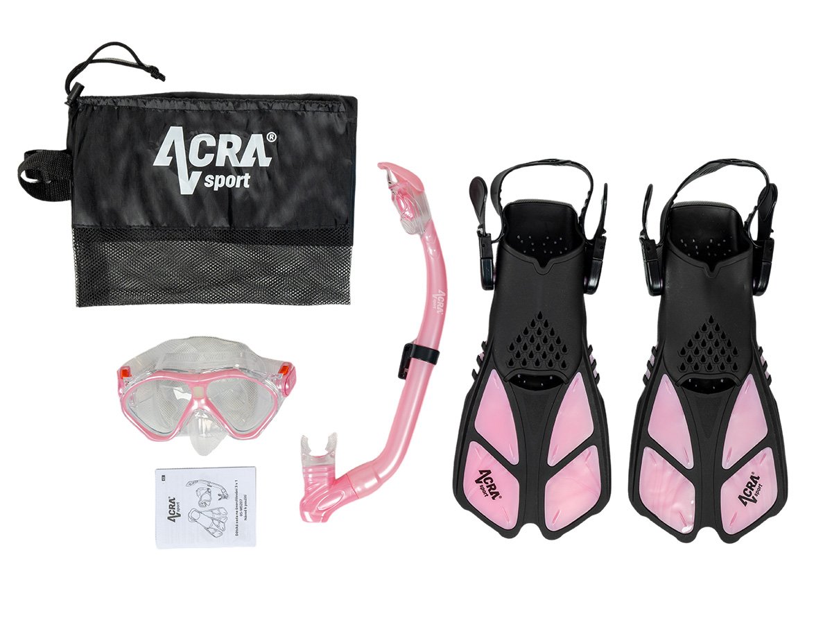 Acra - Šnorchlovací set 3 v 1, CHILD, PINK, obsahuje masku, plutvy a šnorchel