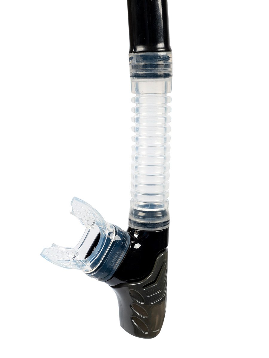 Šnorchel Dry Top na nerušené dýchanie: Vysokokvalitný šnorchel s ventilom Dry Top, ktorý utesňuje dýchaciu trubicu pri ponorení. Šnorchel Dry Top zabraňuje vniknutiu vody do dýchacej trubice, ergonomický silikónový náustok je pohodlný a odolný. Spodný výplachový ventil umožňuje rýchle vypustenie vody, takže si môžete vychutnať jednoduché a nerušené dýchanie pri potápaní pod vodou.