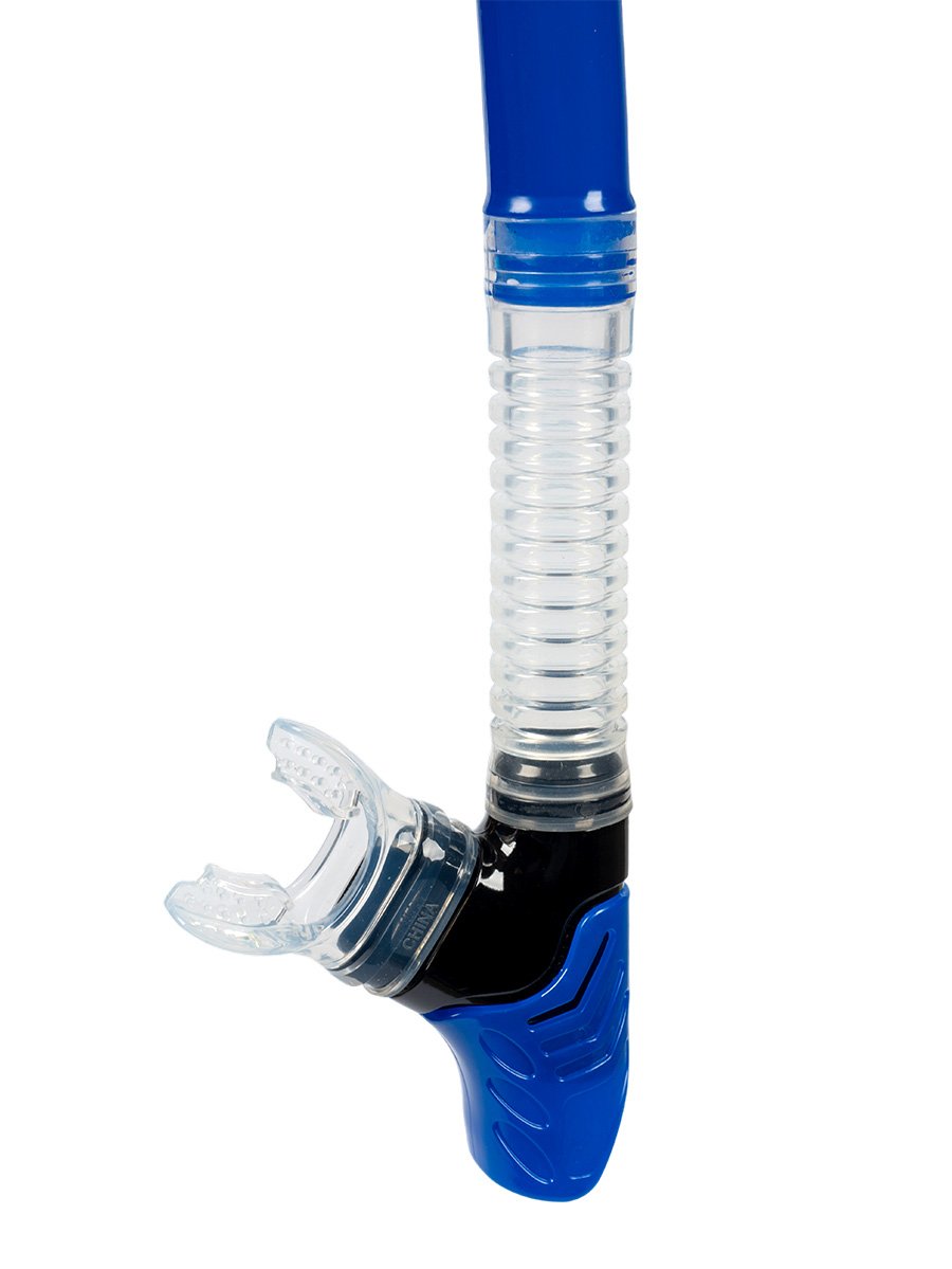 Šnorchel Dry Top na nerušené dýchanie: Vysokokvalitný šnorchel s ventilom Dry Top, ktorý uzatvára dýchaciu trubicu pri ponorení. Šnorchel Dry Top zabraňuje vniknutiu vody do dýchacej trubice, ergonomický silikónový náustok je pohodlný a odolný. Spodný výplachový ventil umožňuje rýchle vypustenie vody, takže si môžete vychutnať jednoduché a nerušené dýchanie pri potápaní pod vodou.