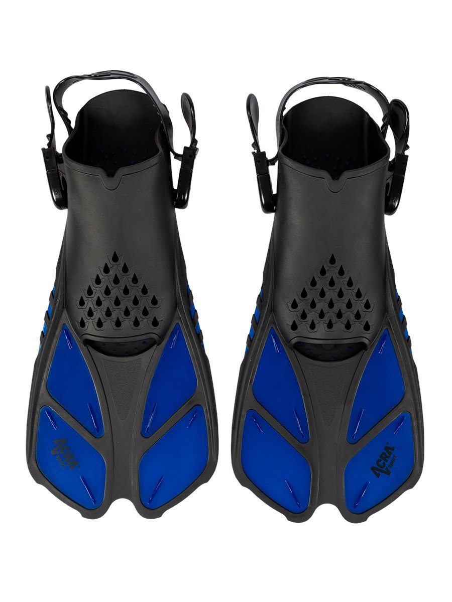 Pružné nastaviteľné potápačské plutvy: Dlhšia, ľahká a citlivá čepeľ zabezpečuje plynulý, ľahký a zároveň silný odraz. Plutvy s otvorenou pätou a nastaviteľným remienkom, vreckom na nohu a remienkom sú vyrobené z odolnej gumy, ktorá zaručuje pohodlné nosenie. Plutva Acra Sport poskytuje vynikajúcu trakciu s miernou silou kopania, ktorá je ideálna na vaše šnorchlovanie alebo potápanie.
