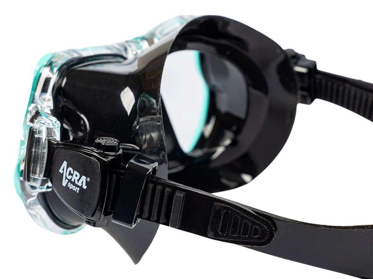 Maska na šnorchlovanie s panoramatickým výhľadom: 180° HD panoramatický pohľad s úpravou ANTIFOG. Šnorchlovacia maska Acra Sport, vyrobená zo štyroch okien s panoramatickým výhľadom, so šošovkou z tvrdeného skla a hypoalergénnou silikónovou vložkou, odoláva tlaku pod vodou pri potápaní a šnorchlovaní a ponúka maximálne pohodlie. Lem potápačskej masky je vyrobený z mäkkého a pružného silikónu a náustok z potravinárskeho silikónu je bezpečný, vytvára vodotesné spojenie s tvárou každého vodiča a dokonale sa pripevňuje k ústam bez zvláštneho zápachu.